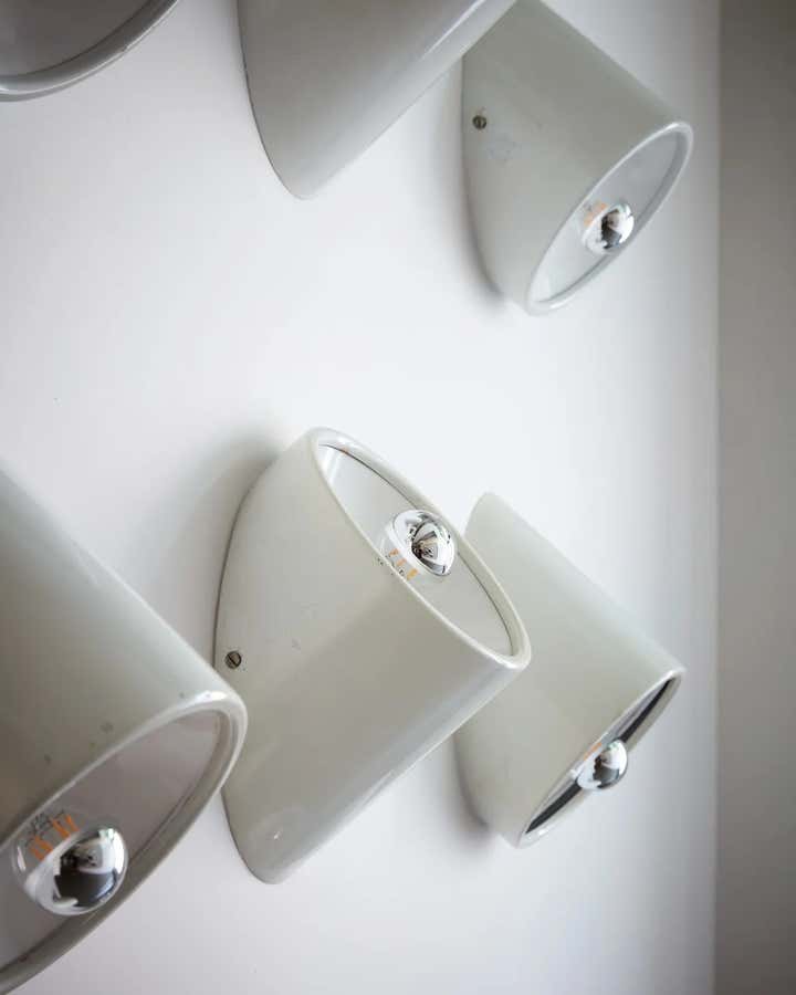 One other important ‘rule’ of the project was an exactingly curated group of colours and materials. Suede, marble and plaster were used throughout; if it could be plastered, it was. Bright primary colours were banished in place of hues that could lower your blood pressure: whites, creams and greys. And if it couldn’t be one of those colours, we used a metal in that shade. Chrome, for example. Lots of chrome.