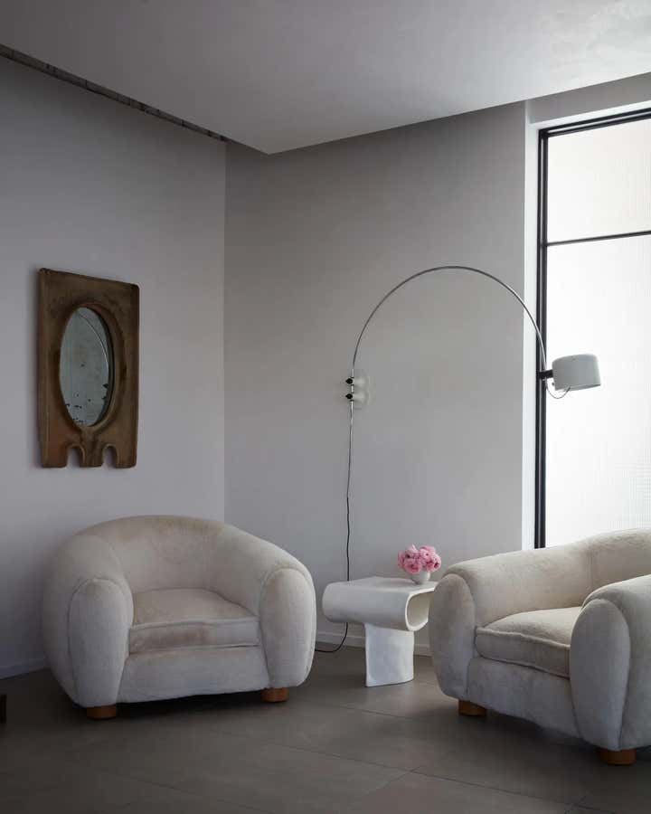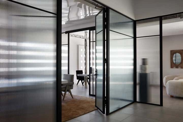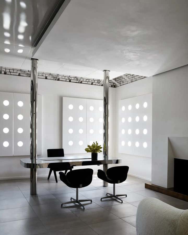 After gutting the space, the first thing Brent did was to create movement, passages to other environments, all done with a goal of grounding and calming down the previously chaotic space. One of the best things that he did was to create perforated arcs, shutters and walls, inspired by the work of the renowned Hungarian-French designer Mathieu Matégot. ‘If we had a wall that seemed like a blockage, we perforated it,’ says Brent wryly.