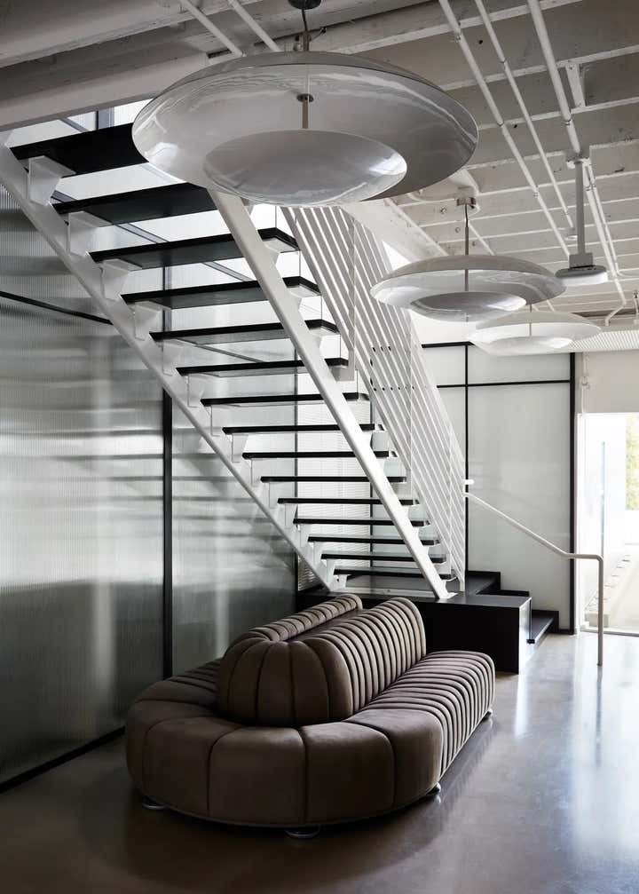 Almost everything in the office was bespoke, right down to the individual vintage subway titles that took three months to find and polish. My favourite area is the conference room, which sports a handmade poured concrete table that seats more than 15 people. There is no colour in this room, no distraction from creativity.