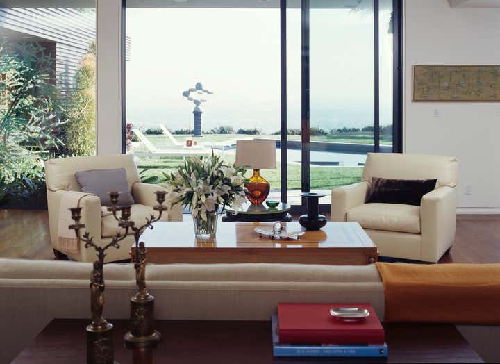 The first house for the long time client was a 1940’s ranch style …after that he moved on to the quintessential Hollywood Hills modernist house with sweeping views that covers from downtown out to the Pacific Ocean. We combined contemporary pieces with some wonderful mid-century items from the client’s family.