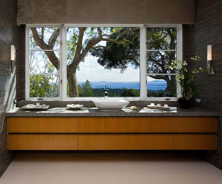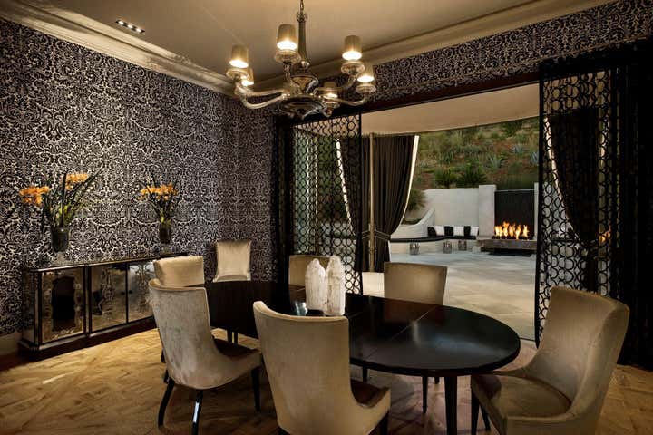 Maienza+Wilson preserved this John Elgin Woolf original Mid Century estate left to ruin! John and Gregg discovered Woolf’s original plans at the University of California, Santa Barbara, Architectural Archives department. With their ingenuity and classic modern interior design style, John and Gregg brought the house back to life. Maienza+Wilson created luxurious bathrooms, kitchen, wine cellar and Pool House / Guest House. By highlighting it s original Hollywood grandeur and by re-creating dramatic mid century architectural details found in Woolf’s original design, long gone from the house, the result is a stunning and grand simplification of a “Hollywood Dramatic” style.