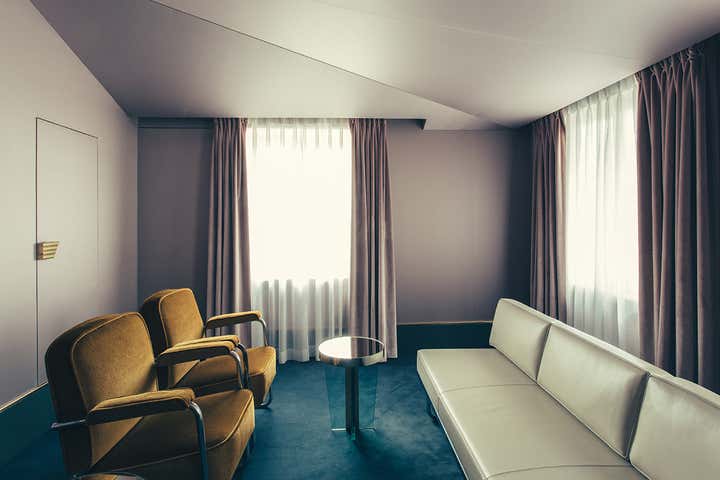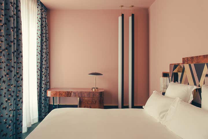 After being used for some time as offices, the building was purchased in 2013 by Nadia Murano and Denis Nourry, to whom we owe l Hôtel du Petit Moulin designed by Christian Lacroix in 2005. The selection of Britt Moran and Emiliano Salci of DIMORESTUDIO was a considered choice as they wanted to conserve the heritage of the building, creating a strong dialogue between past and present, thanks to the use of iconic objects designed by famous historical designers, along with other salvaged pieces and newly designed custom made furniture.