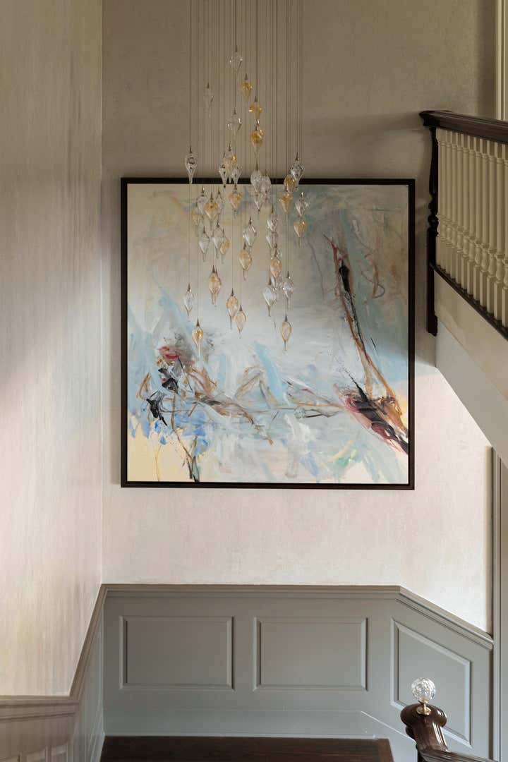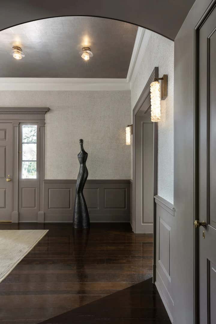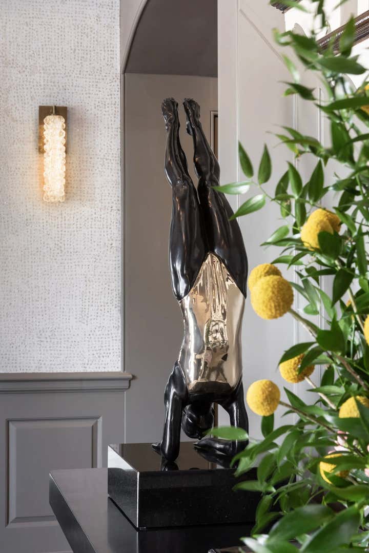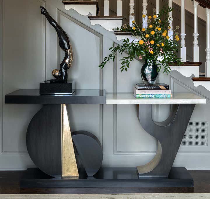 Paying homage to architects Marston Maybury, I created a fresh design in the foyer, befitting the grandeur of the home. Thoughtfully selected design elements, encompassing textures, layered hues, custom pieces, and distinctive art turned this space into a captivating work of art.