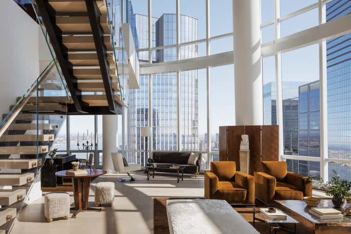 High-rise living reimagined with this turnkey duplex penthouse in New York. Spanning more than 5,100 square feet, the residence pairs double-height drama with a tonal palette that makes even its 26-foot great room feel intimate.