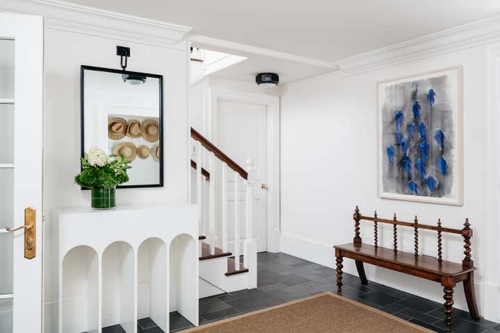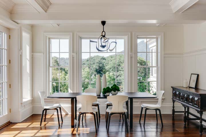 This house was originally built by Steve Wisenbaker for the previous owners with an impeccable sense of elegance and proportion in every detail as well as breathtaking views of Mt. Tam. The goal was not to have a defined aesthetic but instead a more diverse approach to portray their multiple interests and deep appreciation for one-of-a-kind, vintage and custom items. It’s been truly joyful to scout for the perfect Jacobean antiques and vintage Moroccan rugs to go along with custom lighting designs from the likes of Herve Van der Straeten and art by Richard Serra.