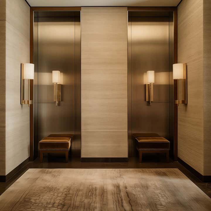 [guestroom, suite, corridor, club lounge, model room, reception, lobby, elevator lobby, bathroom, custom furniture, custom lighting]