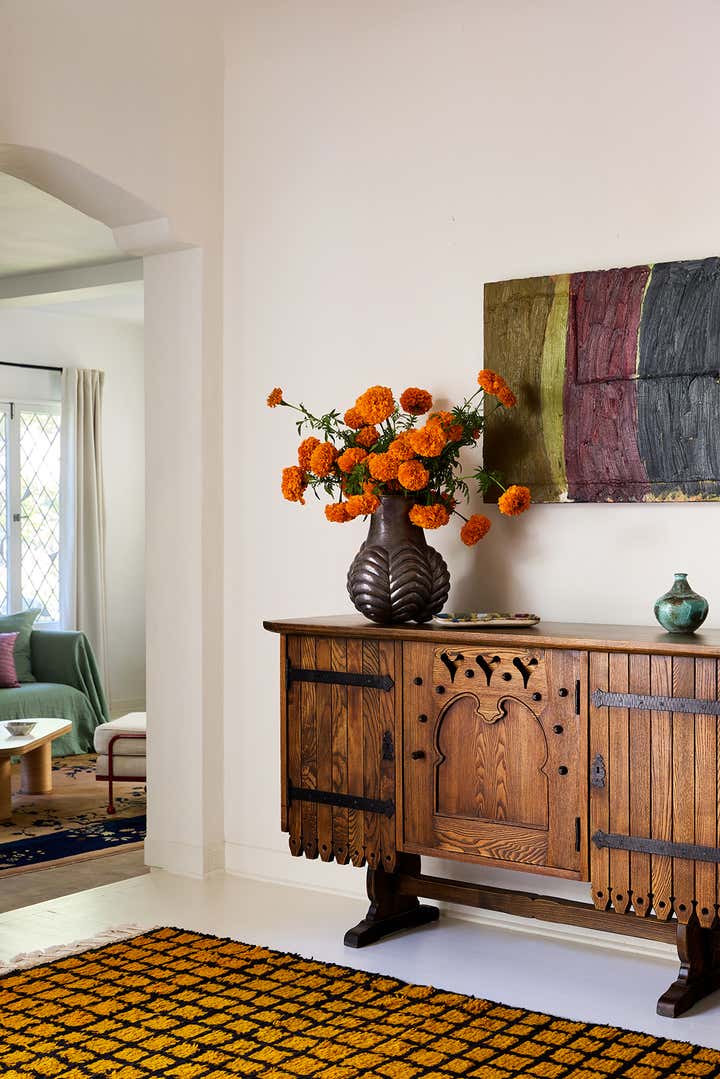 Both honoring while playfully subverting the vocabulary of its 1920’s Spanish Revival architecture, Studio Roene’s Julia Sobrepeña King’s Los Angeles pied-à-terre was reimagined in the fantasy spirit of a 1980’s art loft. The designer embraces spaces that spark conversation, defining elegance as an expert dash of quirk . So when it came to decorating her LA home, King embraced contrast and tension as an alternative way to celebrate the home’s details without pandering to expectations of how a classic Spanish Revival interior should look and feel.