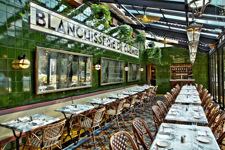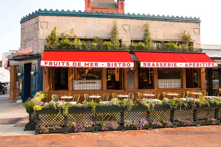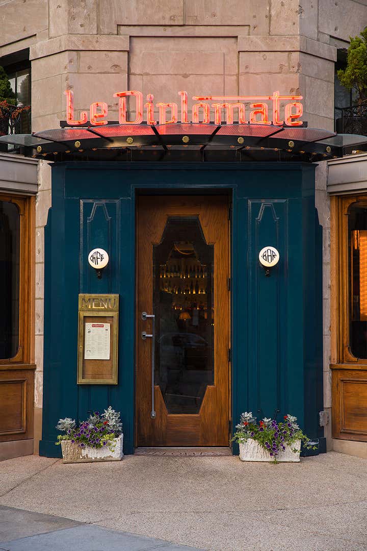 An homage to French cafe culture, Le Diplomate is SHD s second adaptation of a French classic with Stephen Starr, and the debut SHD project in Washington DC. The “Tour de France” inspired décor – featuring hanging bicycles and framed racing jerseys – is emblematic of the restaurant s raison d etre: Just as the Tour de France routes through several countries, the population of Washington DC is intersecting and international. While guests immediately take notice of the classic elements of French bistro design – intimate leather banquettes, woven rattan chairs, traditional tile floors, and imported zinc bar – the overall experience is to be transported. Without the subtle clue “Blanchisserie de Chemise” rendered in tile, you would never guess the building s past life as a neighborhood laundromat.