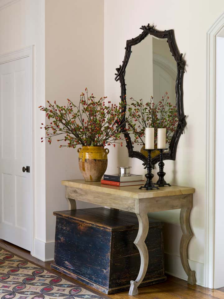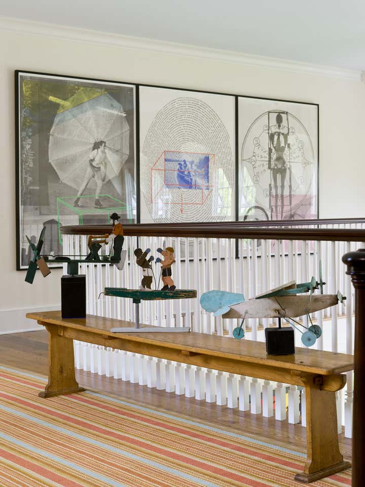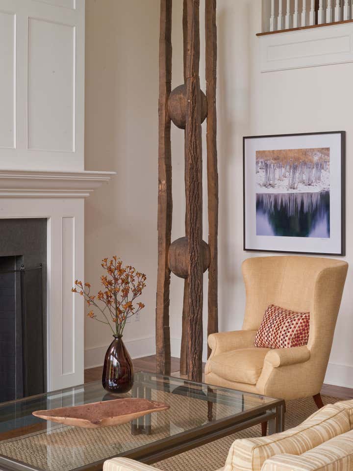 The clients wanted to showcase their contemporary art collection along with their folk art so the backgrounds were kept simple. We played off the wonderful light of the mountain top house. It is a house that is used all year round so we had to come up with a color scheme that would look inviting in all seasons.
