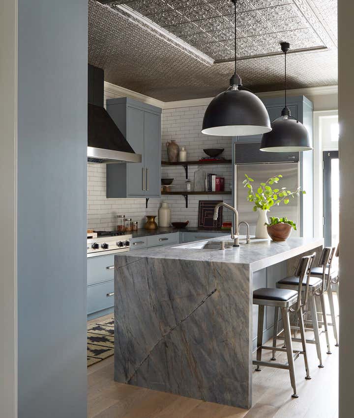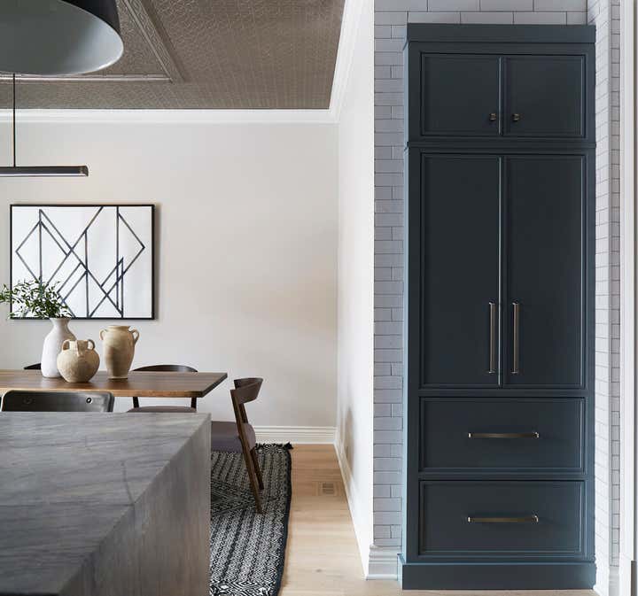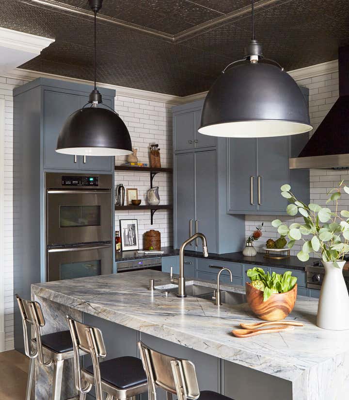 This Graystone located in Chicago’s Logan Square is a terrific before and after. The overall design aesthetic was based on an industrial modern concept on the client’s wish list. The designers scaled back on the concept to make it warmer and gave nods to industrial modern here and there. KitchenLab Interiors (KLI) gutted almost the entire home. Pre-renovation the house had a quality 80’s renovation but it was simply not the new owners taste. KLI started the project by putting back the character of the home. The 2nd floor got two new bathrooms. Both fireplaces were redone, all new floors, stairs, and a kitchen rounded out the remodel. All new casings and crown moldings throughout the home took the 80’s open concept back to a traditional Graystone floorplan where rooms are articulated. The designers removed wood medallions on the floor and lots of tray ceilings, column and late 80’s arches but decided to keep the tin ceiling in the kitchen.