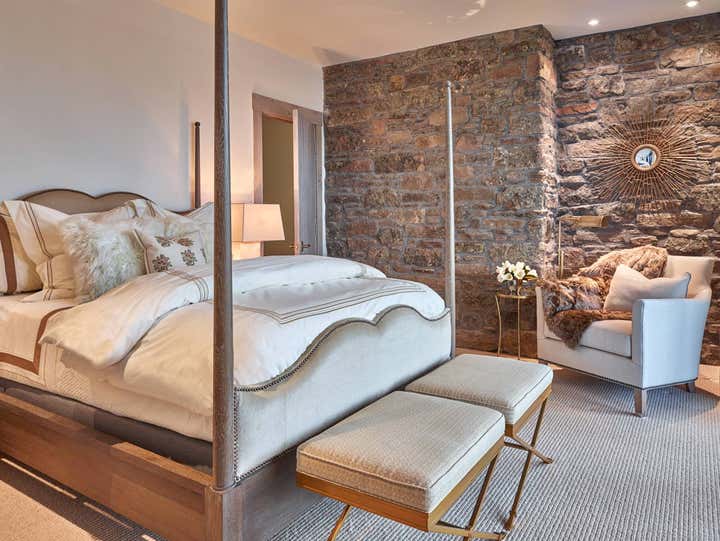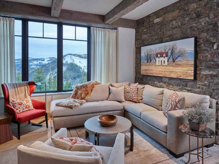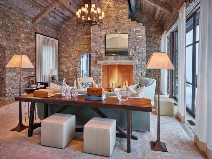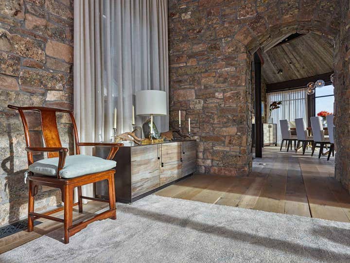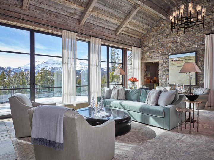 When presented with a spectacular setting and structure, we complement the grandeur by creating luxuriant spaces for reflection. Working within the architectural vernacular of stone and timber, this Montana residence achieved a graceful serenity of texture and light through collaboration. | Architect JLF Associates, Contractor: OSM, Landscape Architect: Verdone Landscape Architects