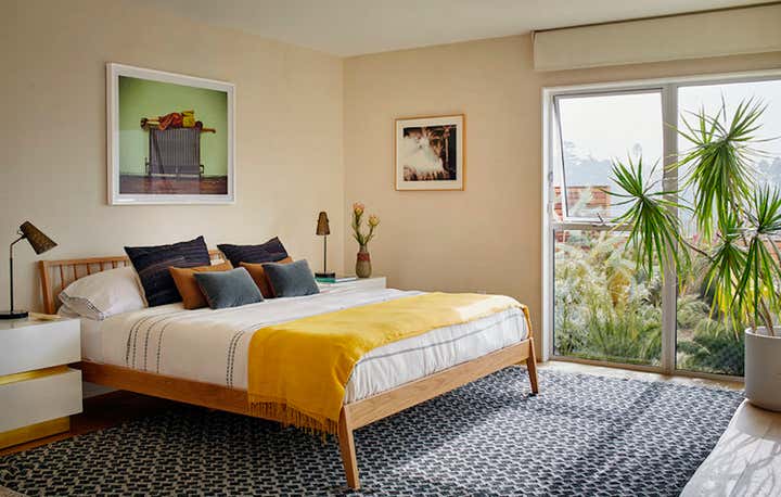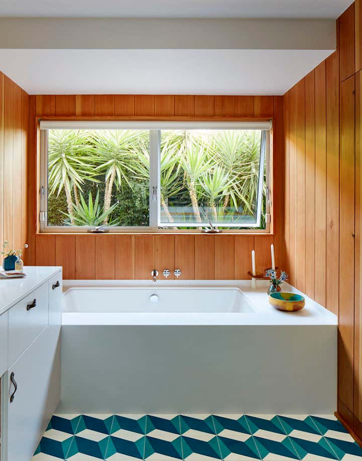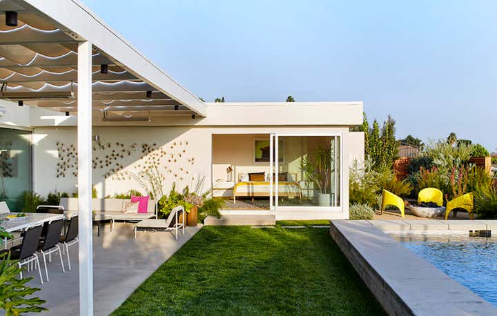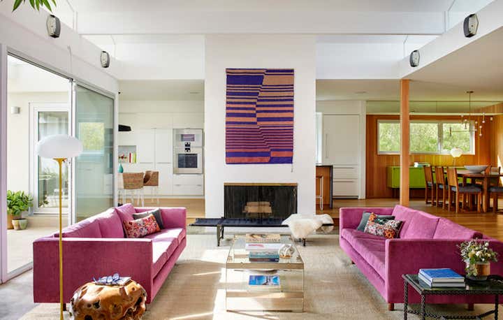 Mid-century modern overlooking the LA basin. Architectural remodel by Barbara Bestor. Interiors inspired by Ellsworth Kelly and Corita Kent.