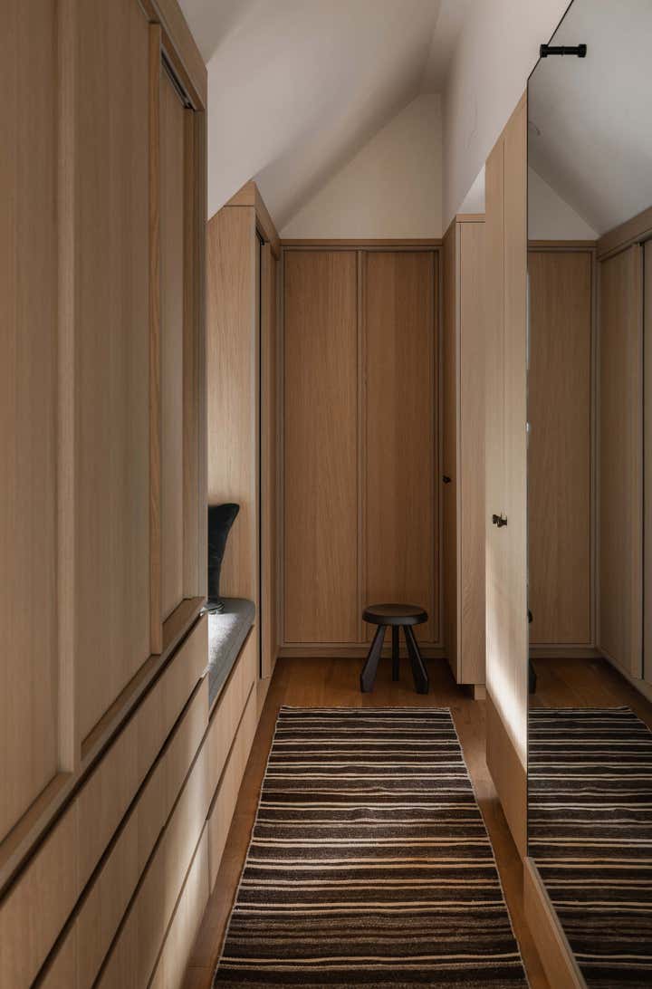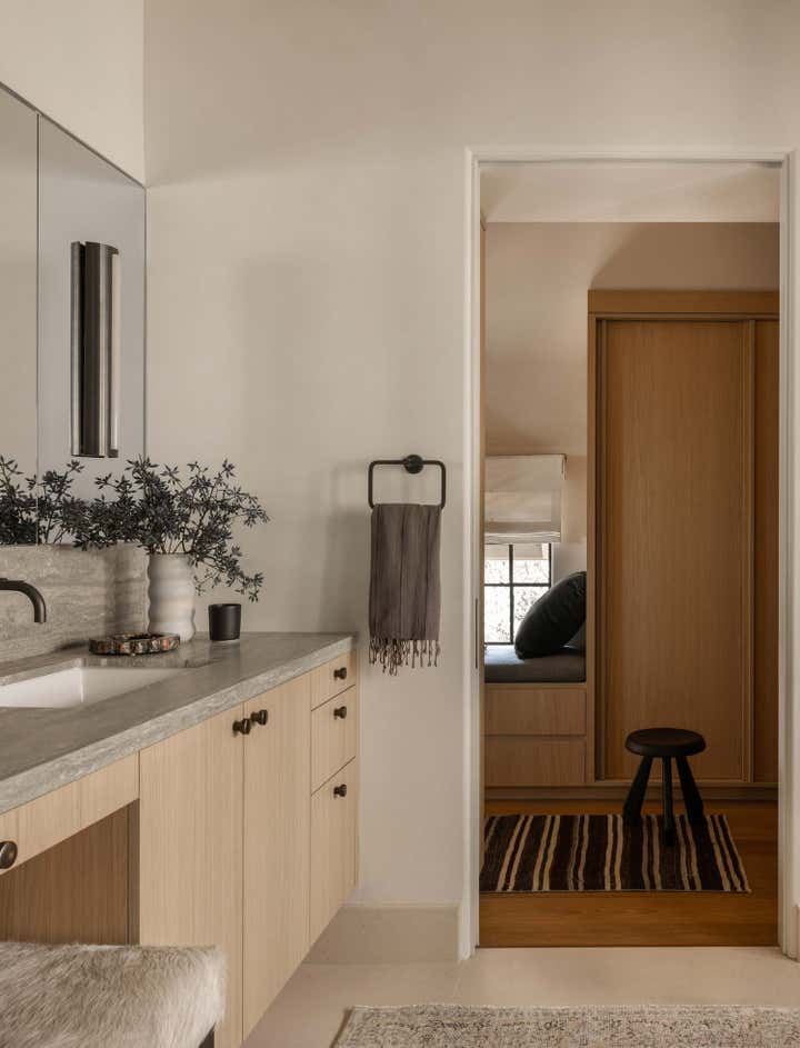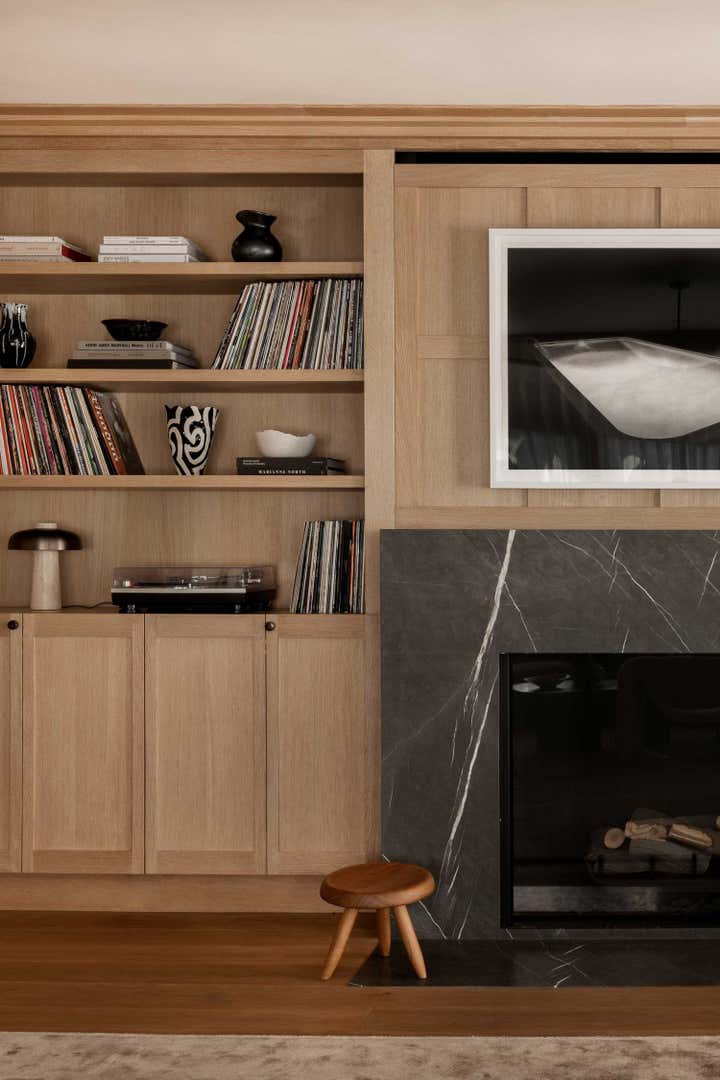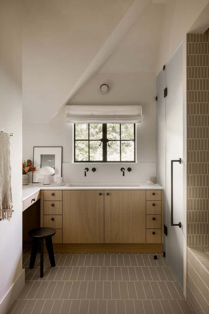 Nestled into a sunny, forested slope at the base of Mt. Tamalpais in Mill Valley California, the site features panoramic views of the San Francisco Bay and surrounding canyons. The clients fell in love with the home’s Tudor architecture and wanted to find a way to make the updates required (both in terms of layout and aesthetics) while staying true to the home’s character. In answer to their request for a contemporary but timeless design, Studio Montemayor approached this project as a restoration instead of a simple renovation. Bringing in Traditional elements such as the English-style oak paneling in the living room, (which also informed the design of the kitchen cabinetry), and contrasting them with sculptural furnishings such as a modular Italian sofa, Pierre Paulin lounge chairs, and a contemporary black marble fireplace. The aim was to create a dialog between the architecture and furnishings, and through juxtaposition ignite those conversations.