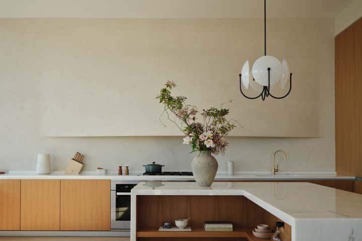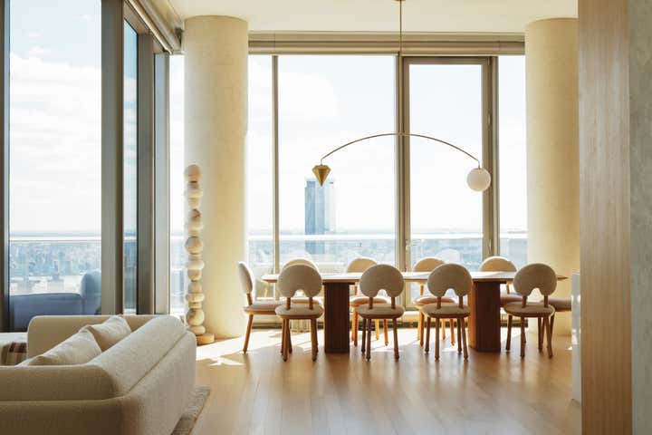 A masterclass in warm minimalism and refined Wabi Sabi aesthetics, Maison Leonard features 4 bedrooms and 4.5 bathrooms, purposefully designed to offer breathtaking 360-degree vistas of Manhattan, establishing an urban sanctuary in perfect harmony with its surroundings. The interior project meticulously navigates the existing global landmark building, delicately weaving elements of soft sensuality and neutral warmth.