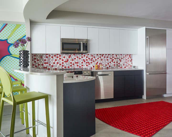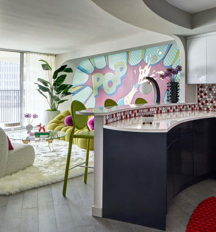Who doesn’t want a pied-de-terre in the iconic Marina Towers!? My clients wanted to turn their old son’s college condo into a Andy Warhol-inspired space full of color that rocked them out of their normal surroundings.