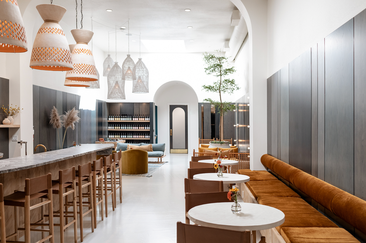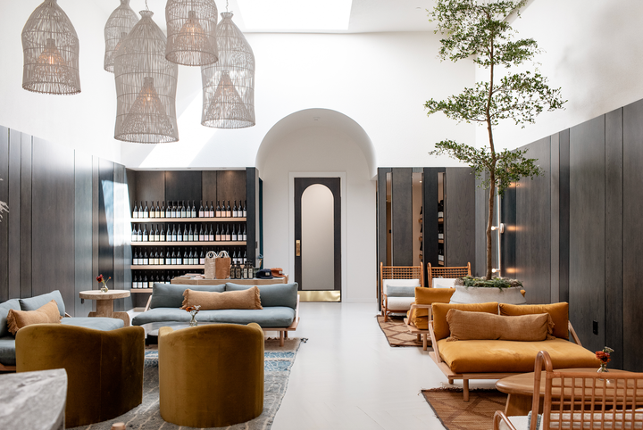 Complete gut and remodel of an old and dated wine tasting room for the new Marine Layer Wines in the heart of the Healdsburg Square.