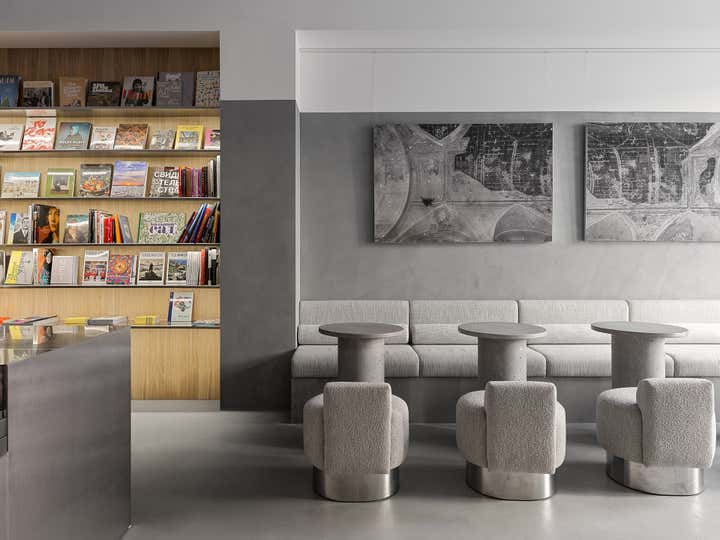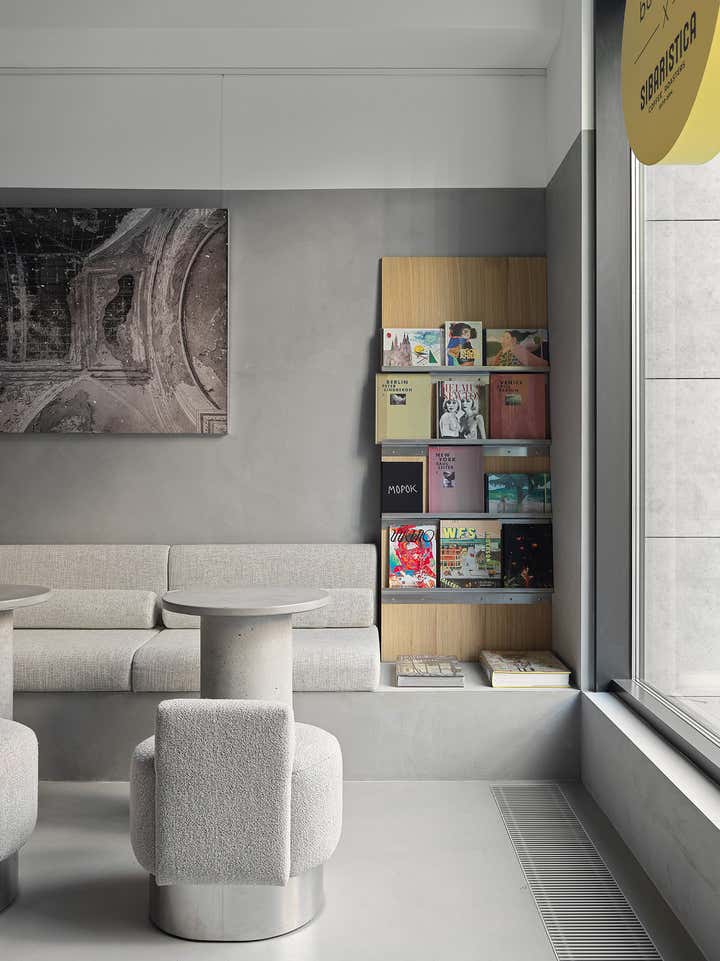 As a continuation of the educational project, the company opened a second bookstore in a growing cluster of the historical Petrogradskaya Storona of Saint Petersburg. The flagship Masters Bookstore combines a bookstore, a coffee shop and an exhibition space for collaborations. There you can find special editions and latest books about painting, architecture, design, fashion and photography. Part of the space is reserved for a coffee shop, well-known Russian roasters and coffee suppliers Sibaristica Coffee Roasters.