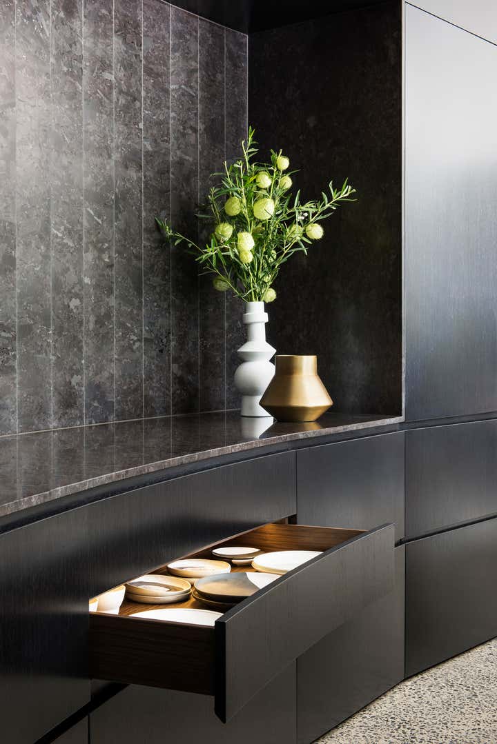 Responding to the brief for a highly luxurious bespoke interior befitting a young international business man, the interiority provides both a private sanctuary and an opulent vehicle of entertainment. Key areas include the kitchen, master bedroom and bathroom, cellar, study, powder room and staircase. Within a reduced palette of stone, timber and bronze, materiality plays a key role.