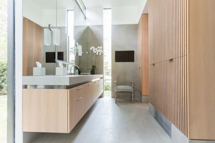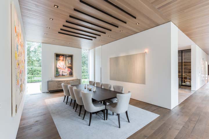 This house was designed by Seattle based architect Richard Sundberg for an art-loving couple in Houston, Texas. Ann Wolf worked closely with the client every step of the way to create a serene backdrop for an ever evolving collection of contemporary painting and sculpture.