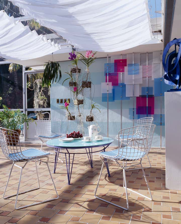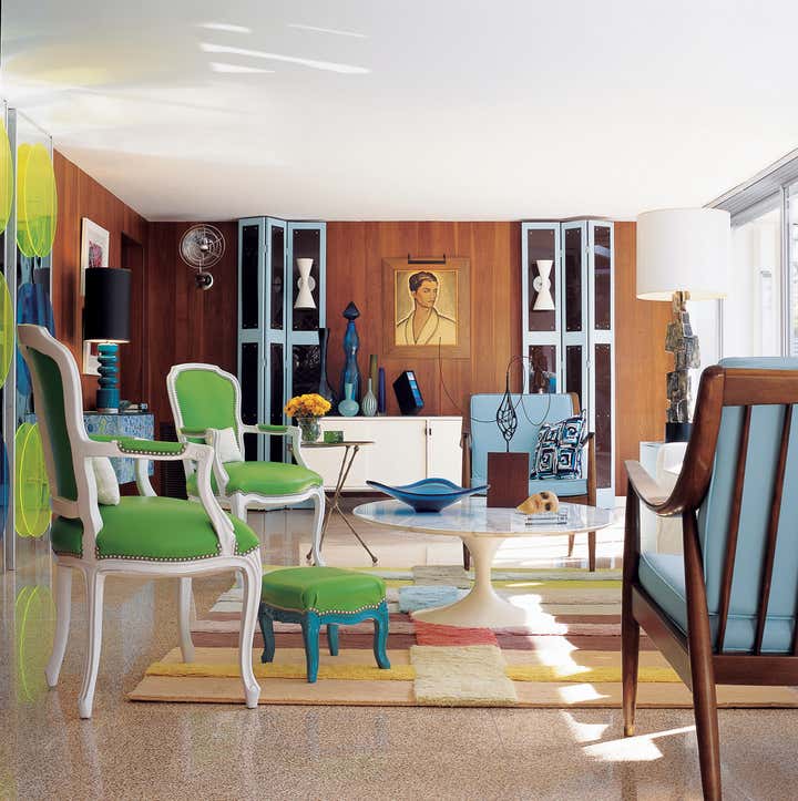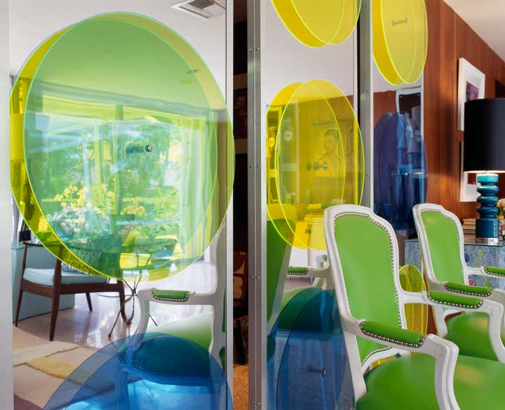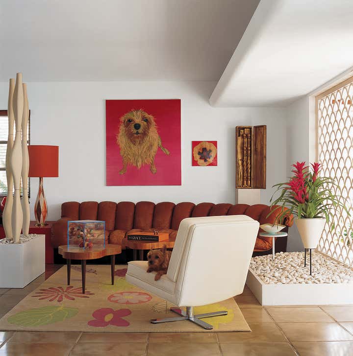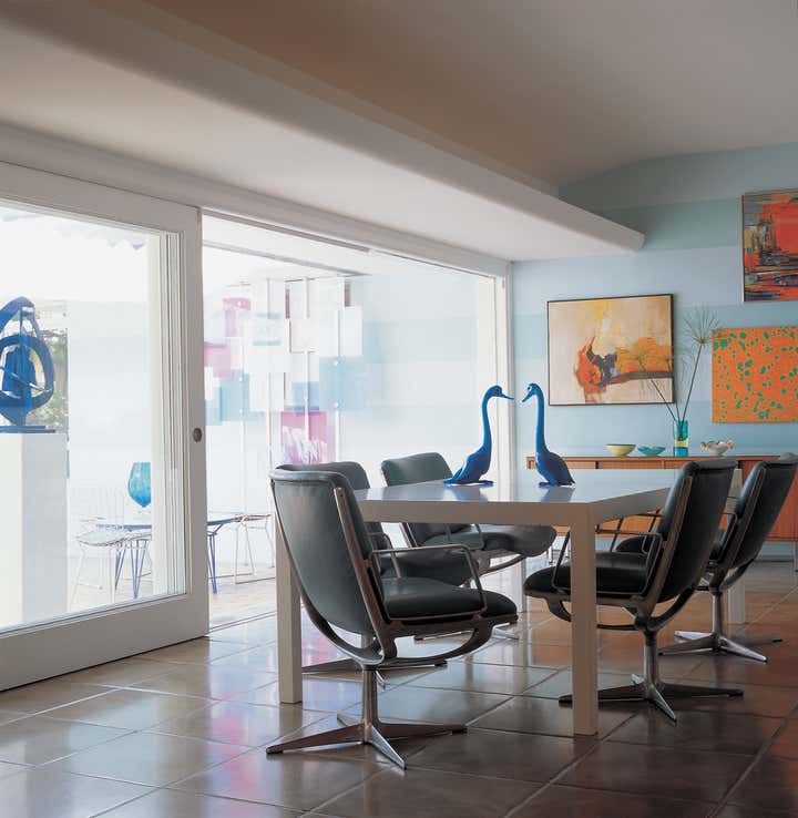 Meyer’s signature plexi wall screen sculptures are located through-out the property. Meyer uses these as glamorous backdrops – the furniture was acquired over a period of 2 years – ranging from Paul Frankl, Eero Saarinen and Harry Bertoia - all original. The home is located 1 block from the bay where it captures amazing breezes – that allows for year round outdoor living in this house. The main rooms all overlook the pool and lanai area. The window glass walls all open up allowing the outdoors and indoors to become as one. There are 2 bedrooms and 2 baths with grand main rooms – designed as a winter home for the original tenants. Meyer tried to restore and remain true to the original bones of the house.