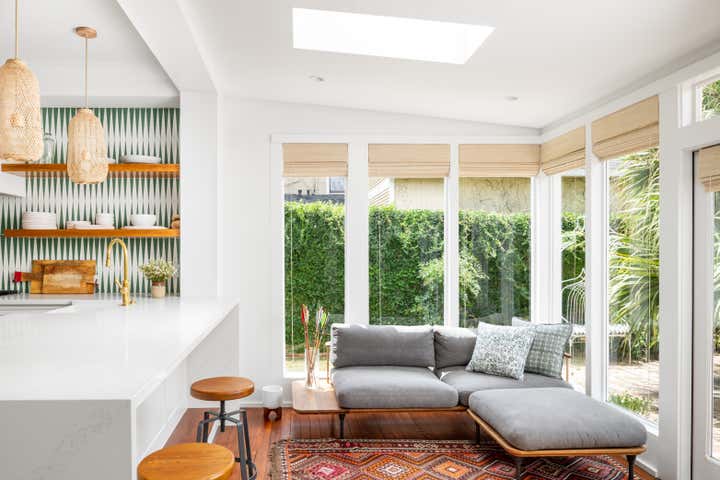 A Mid Century 1920 s Victorian Beauty! Pops of color from fabric and wallpaper to a pristine, clean color palette that is inviting, yet stylish!
