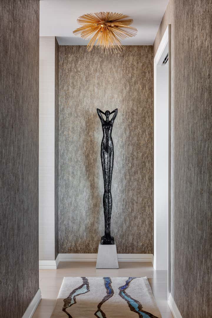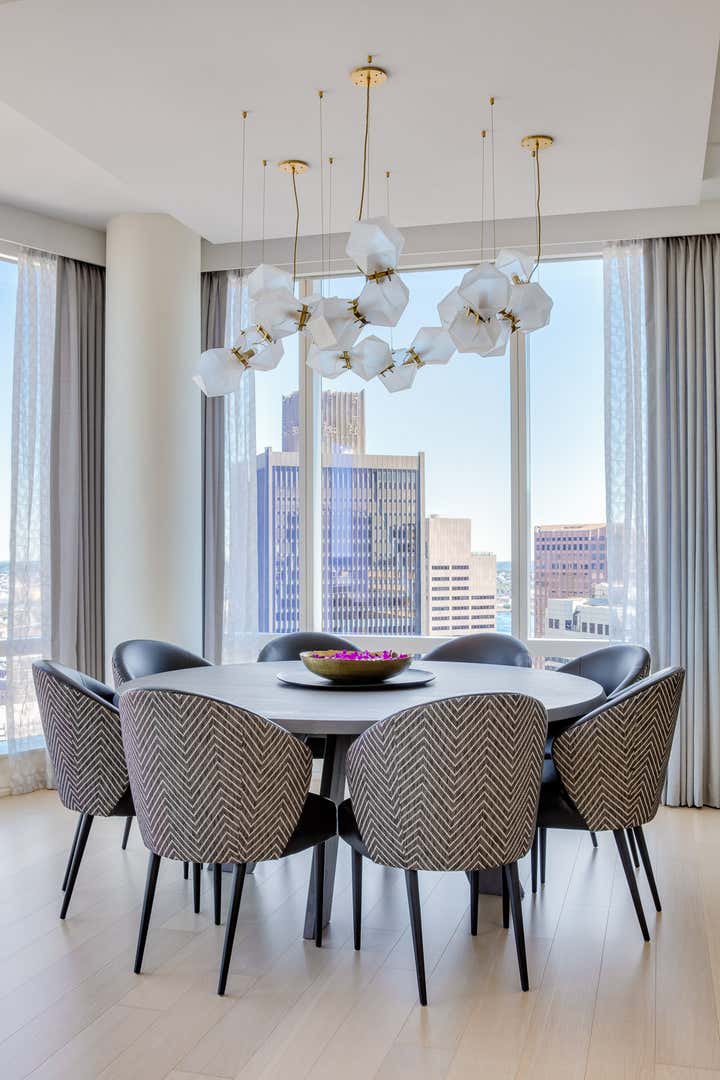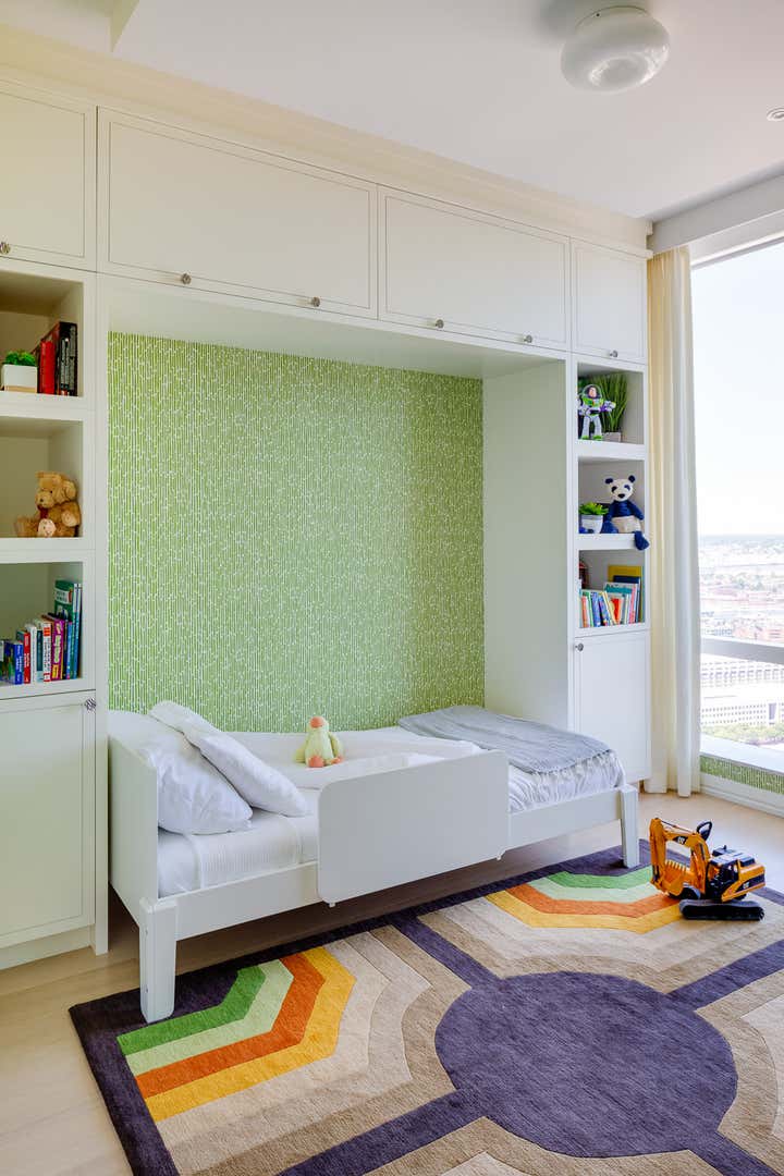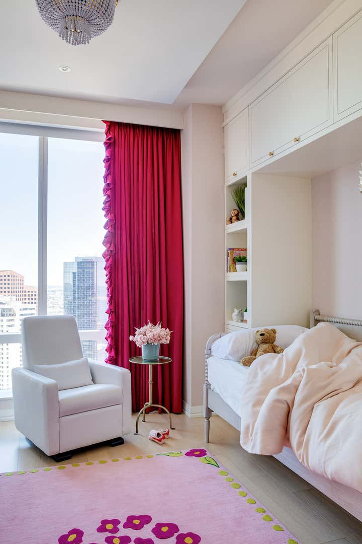 City home for a young family, with a fashion forward style reflective of the building and neighborhood. You ll find custom furniture, lights and area rugs alongside fabrics that are made to look luxe but hold up to the everyday living of kids.