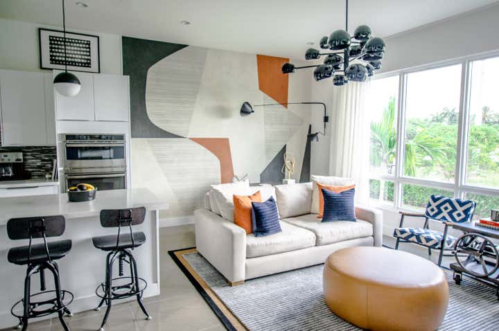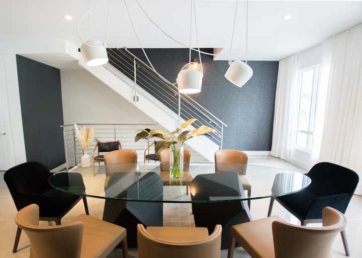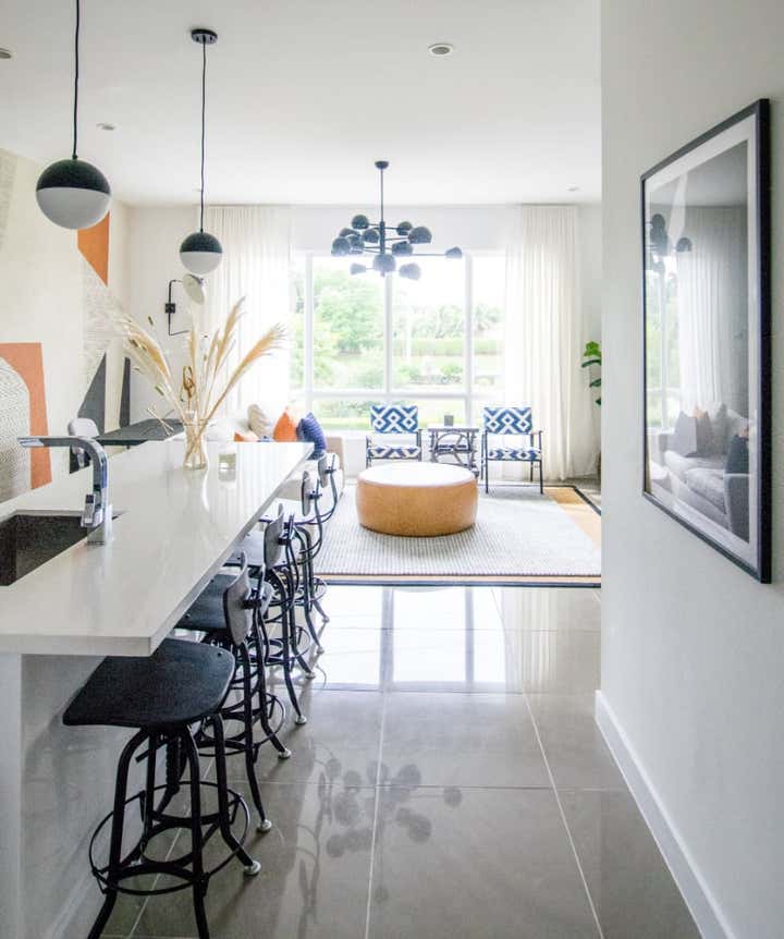 Our client for this four-story townhome is a young executive with a penchant for modern, industrial design. Having lived in the home for only a short time, he wanted to ensure he quickly put his stamp on the space, using our keen eye for condo interior design in Miami. He wanted a place that felt sophisticated without being stuffy but rather effortlessly cool. A globe-trotter through and through, his home is his respite after long weeks on the road. We opted for a less expected take on industrial design. The overall design was predicated on a play on symmetry. We wanted to ensure the space felt open and airy while familiarly comfortable.