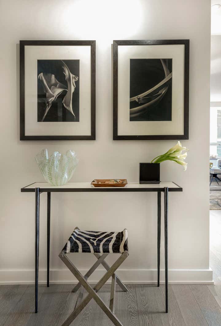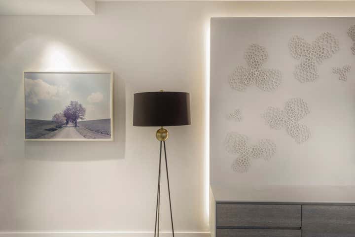 DHD Interiors kept lines sleek and sophisticated to compliment the decor’s streamline setting. The classic neutral palette combined with bold, modern furniture and a chic array of accessories creates the perfect backdrop for the clients’ expertly curated art collection.