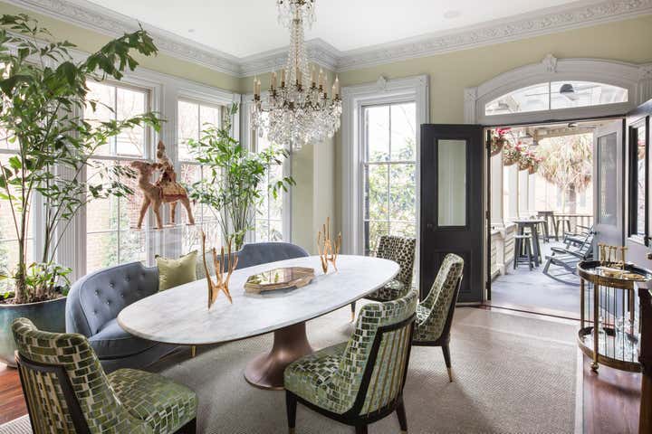 The clients -- a well-known restauranteur and an international CEO -- purchased a traditional Victorian home in Savanah, Georgia, but wanted the interior to reflect their sophisticated style. Chuck Chewning was called in to make their vision a reality. Layering modern furniture, lush textures, and a stunning color palette against the traditional plaster and architectural details, the home functions both for relaxing at home and entertaining.
