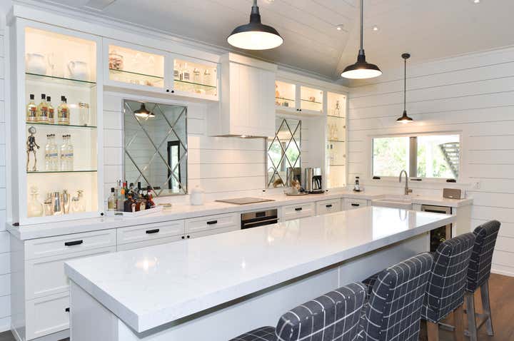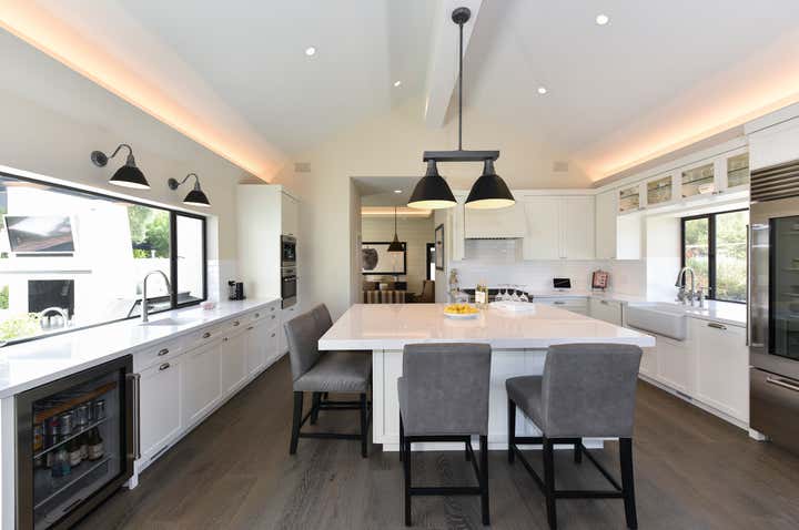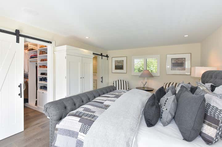 This quintessential vineyard property is the epitome of Modern Farmhouse. The clients were all about monochrome so we added a lot of texture and tones throughout the project. There was nothing more rewarding than enjoying our celebratory glass of champagne on the rooftop deck with a beautiful view of their cabernet vineyard!