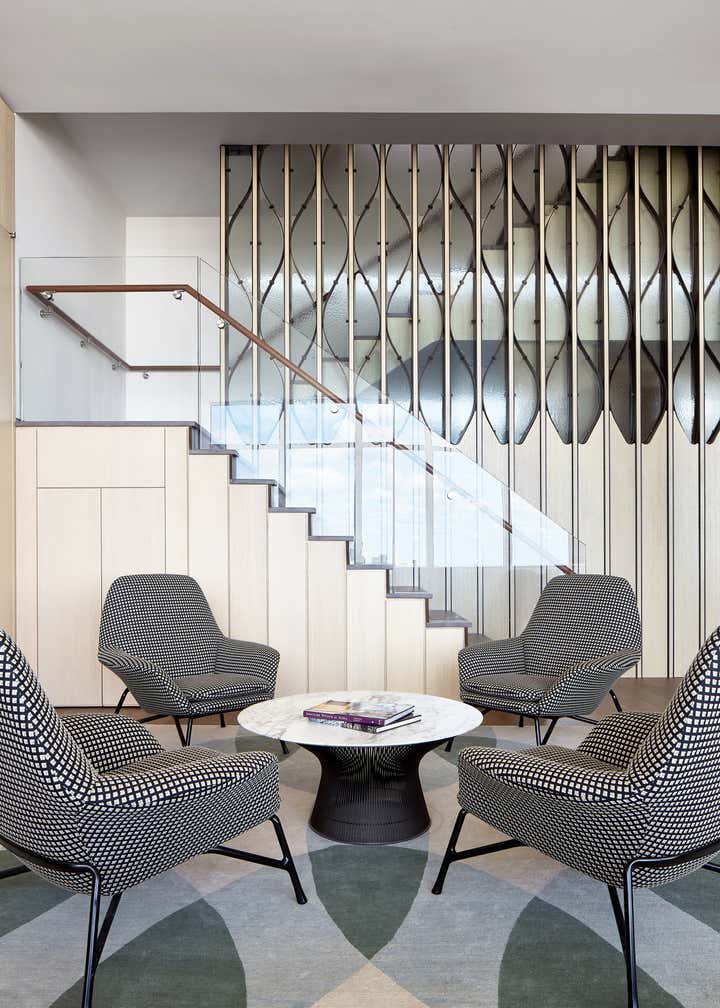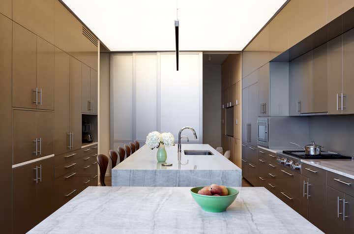 A thoughtful penthouse renovation designed to promote health, happiness, and productivity by maximizing light penetration into the living space. The new layout is flexible to allow room and privacy for guests and connects two previously disparate floors with a sculptural stair.