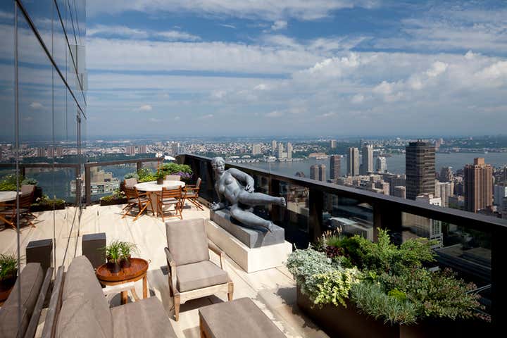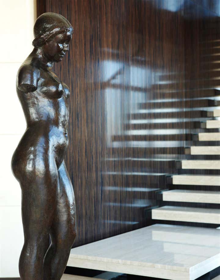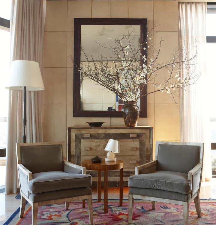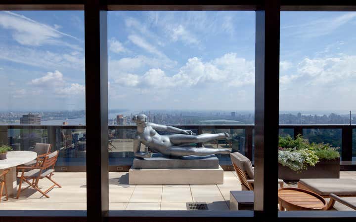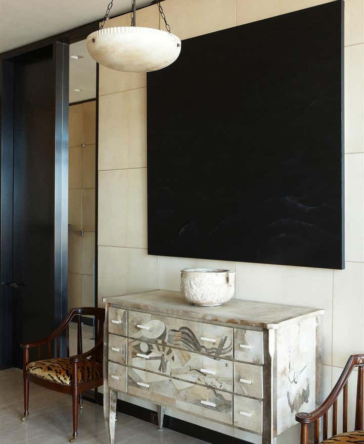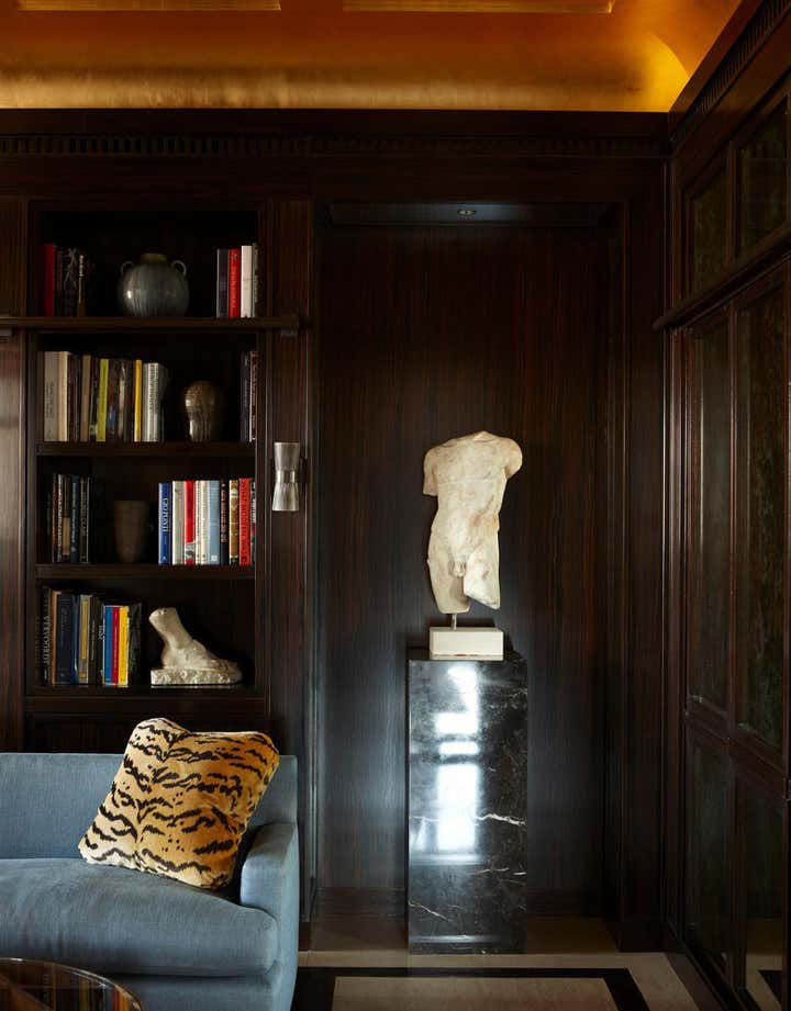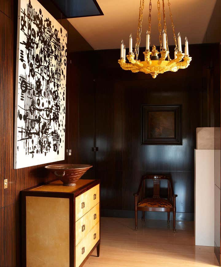 Aparicio + Associates developed nearly all aspects of the this spectacular duplex overlooking Central Park in a complete gut renovation that included breaking through the building s concrete slab to connect its two floors with a floating staircase. The interiors are finished in luxurious wood and parchment paneling, and the decor is an eclectic blend of fine 20th century antiques, art, and custom made pieces.