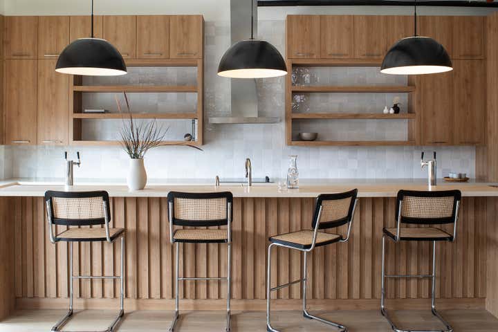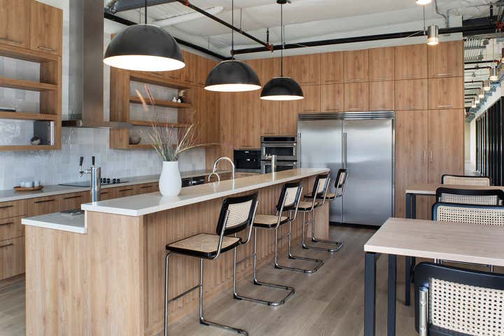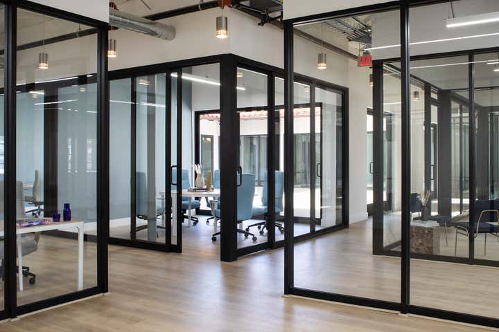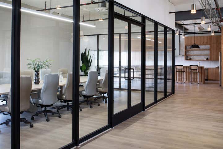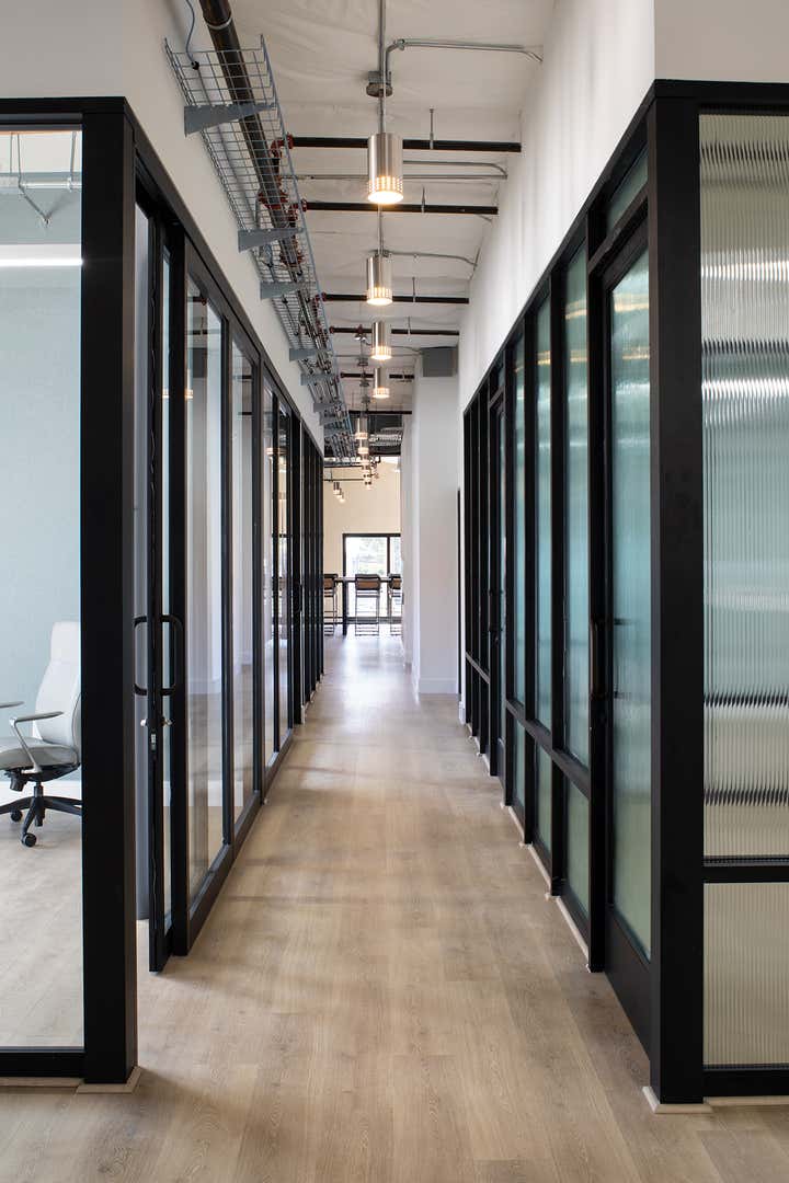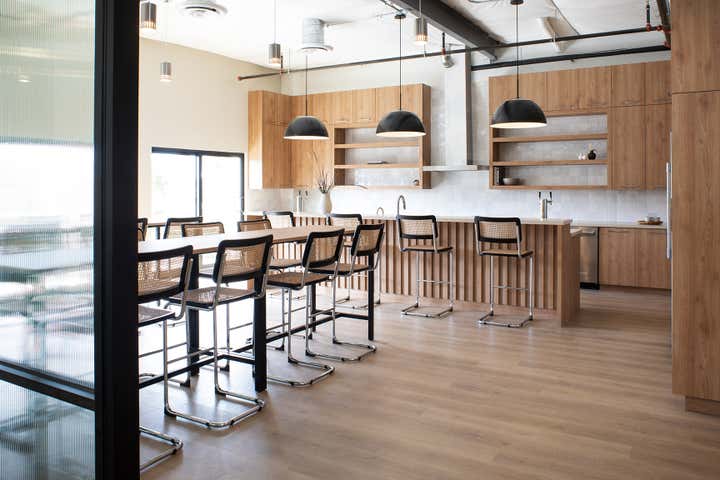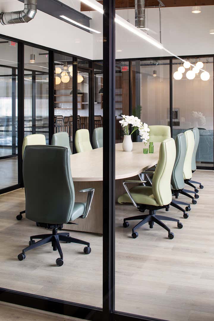 Our new minimalist office design on LA’s Pacific Coast Highway offers wide walkways, glass partitions and both private and public meeting spaces for small, large or individual work. The space was previously multiple closed units only accessible through a central courtyard. We created a more open plan with framed glass walls and doors that would better circulate light and air, and filled the space with a nod to design history in vintage sourced and influenced furnishings. Colors are inspired by local nature, muted and soft and complementary of water, clay, palms, succulents and the sun kissed California Coast. Textures and materials are comfortable and reminiscent of a home environment. The vision for the kitchen was to foster relationships and be a place of gathering and cooking with chef appliances and even kombucha and gold brew taps. As our world normalizes we hope the office, while a complex, evolving establishment still remains a place of connection, of personalities and of unforgettable action.