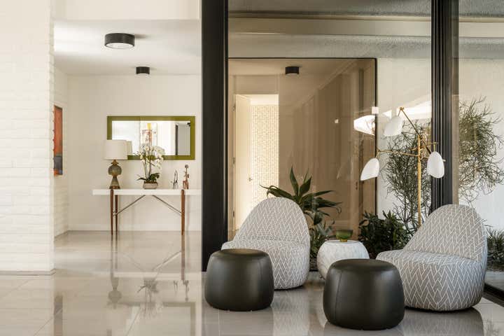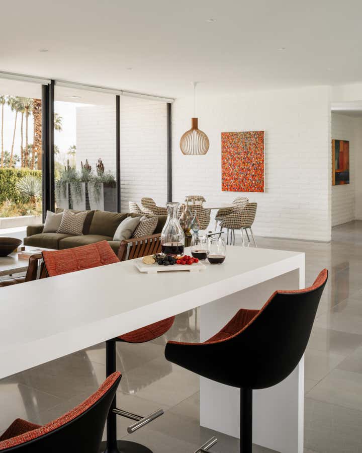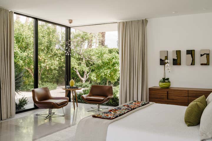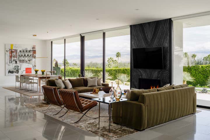 Beautiful home with floor to ceiling glass everywhere bringing the outdoors in. Amazing views...mid century modern accents...I tried to create warmth in the interiors with color, wood accents, textures and art.