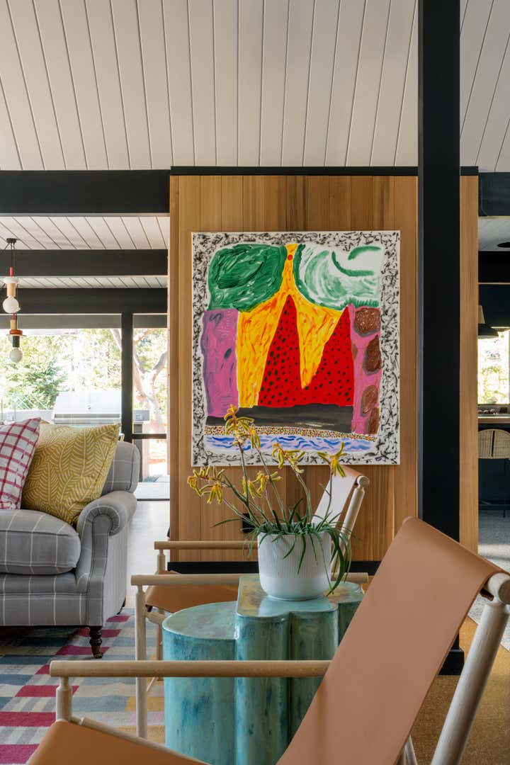 The Atelier Davis team worked with Gustave Carlson Architects to renovate and expand a historic Eichler for a young family with a modern art collection.
