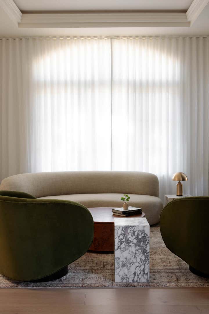 Lighting played a crucial role, with carefully selected fixtures that provide ambient warmth while serving as sculptural focal points. The result is a home that feels serene and sophisticated while remaining welcoming and lived-in.
