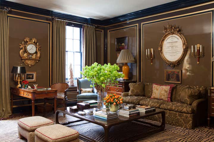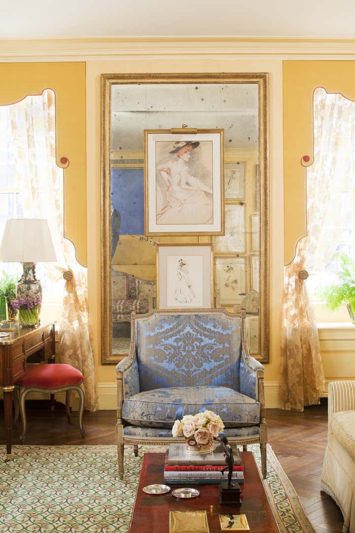 The decoration of a grand Park Avenue residence renovated by Riccardo Vicenzino Architect. This apartment’s old-world Park Avenue opulence is reimagined with rich, saturated colors and atmospheric spaces. Though there are few modern elements in the rooms, they were designed for today’s lifestyle with comfortable furniture arranged in inviting, livable spaces. The gallery, designed to showcase a treasured Beauvais tapestry, is central to the formal spaces. Decorative window treatments were conceived to enhance the architecture and wall surfaces were treated with glazes, painted panels, and sumptuous upholstery.