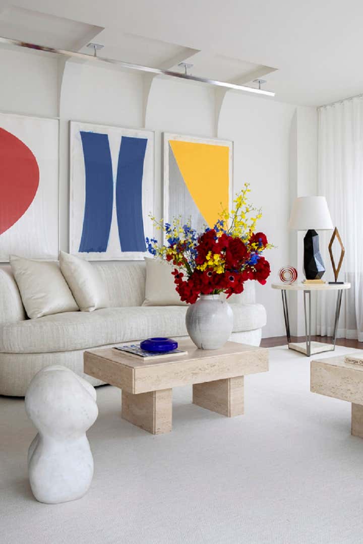 The clients, a retired businessman (he s the scion of a long-established New York family deeply involved in philanthropy, connected with the Kimberly Clark company) and his wife, are the inheritors and collectors of some very special pieces acquired from the 50 s to present. The renovation and design could be called an "art collection in search of a new home". While these various pieces have been hanging in this Park Avenue apartment for many years, the prior design was dark and muted, with colors that pulled away from rather than allowing the full beauty of the art to breathe and truly shine. The new aesthetic was intended to be a mix of modern gallery meets vintage classics (e.g., see the all white LR vs. the warm woods and antique Louis Vuitton trunk in the Media Room.) Always interested in finding new pieces to add to the collection, the clients agreed that a design style not locked in one specific era would provide more opportunities for placement of new pieces.