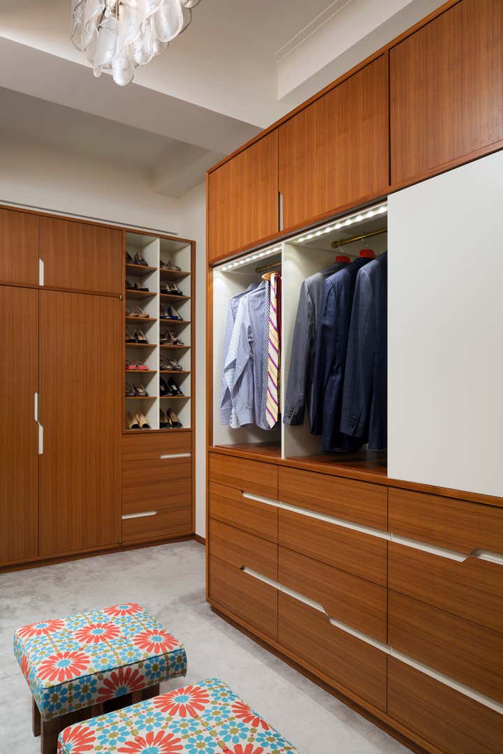 A new duplex apartment with exceptional daylight and views is transformed from a grand Park Avenue residence to a contemporary, family-friendly home by embracing a “gallery spirit,” with a 25-foot-long hall for artworks. Handcrafted, custom installations are designed for every room to complement its striking pre-war bones, while transcending any specific era, such as the private elevator vestibule’s paneling of rosewood, white lacquer and bronze. The color palette grows subtly more intense as one approaches the more private zones.