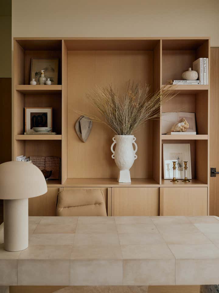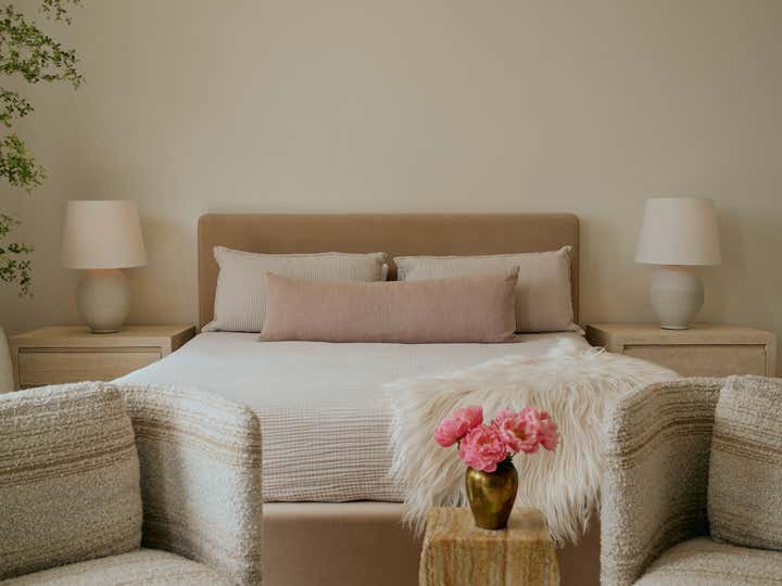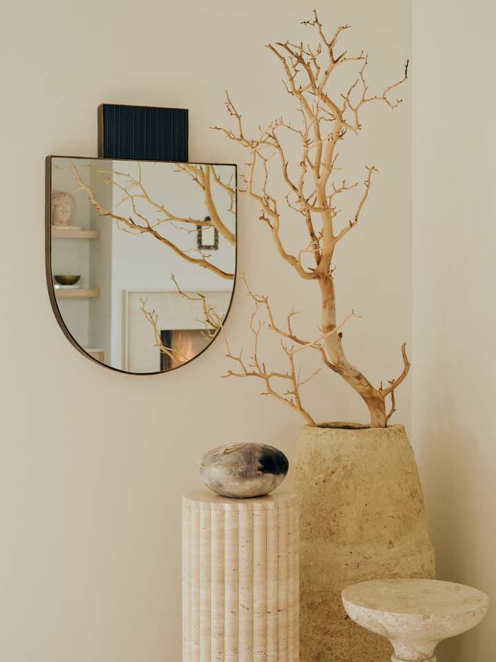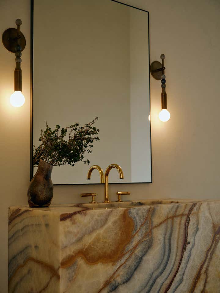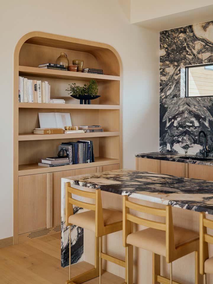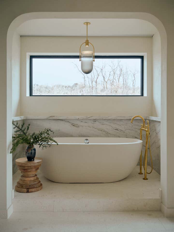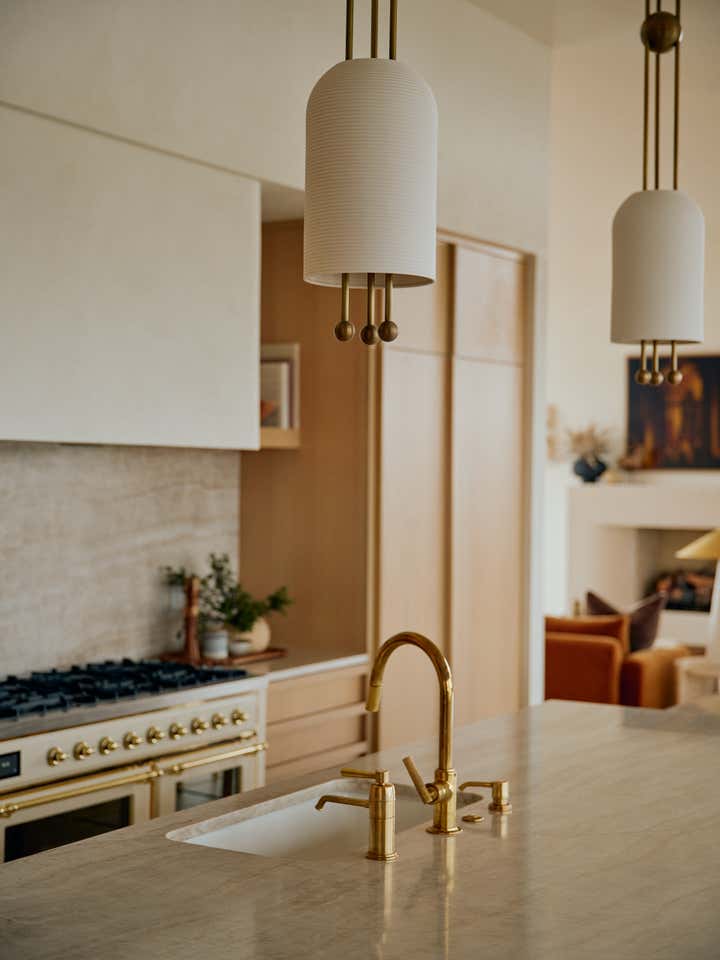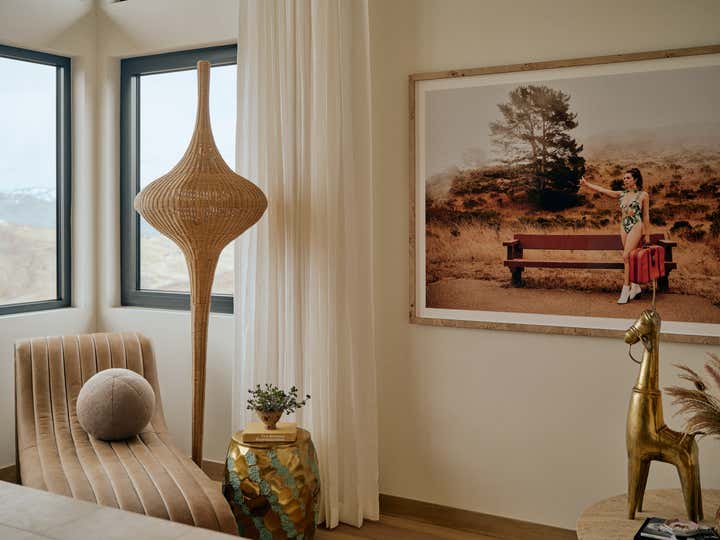 The studio collaborated with long-time clients on this ground-up new build in Park City, Utah. The family of five wanted to create a soulful home that was at once elegant and supremely comfortable. Carefully selected natural stone slabs, artisanal tile, white oak, and hand-troweled plaster served as the backdrop for the home’s considered mix of furnishings and artful lighting. Custom millwork and monumental furnishing pieces designed by the studio, including a plush family room sectional, a solid travertine dining table, and a stone and wood console created a bespoke feel while emphasizing function. Plush rugs and sculptural upholstered pieces in mohair, boucle, and shearling sit alongside beloved family pieces; vintage objects and furnishings; and a thoughtful collection of art and accessories.
