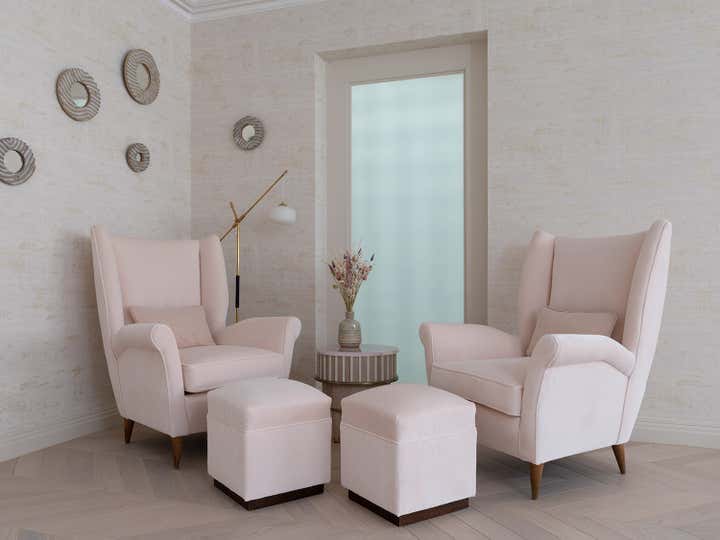 so we introduced pastels and light hues with modern and mid century furniture and accessories.