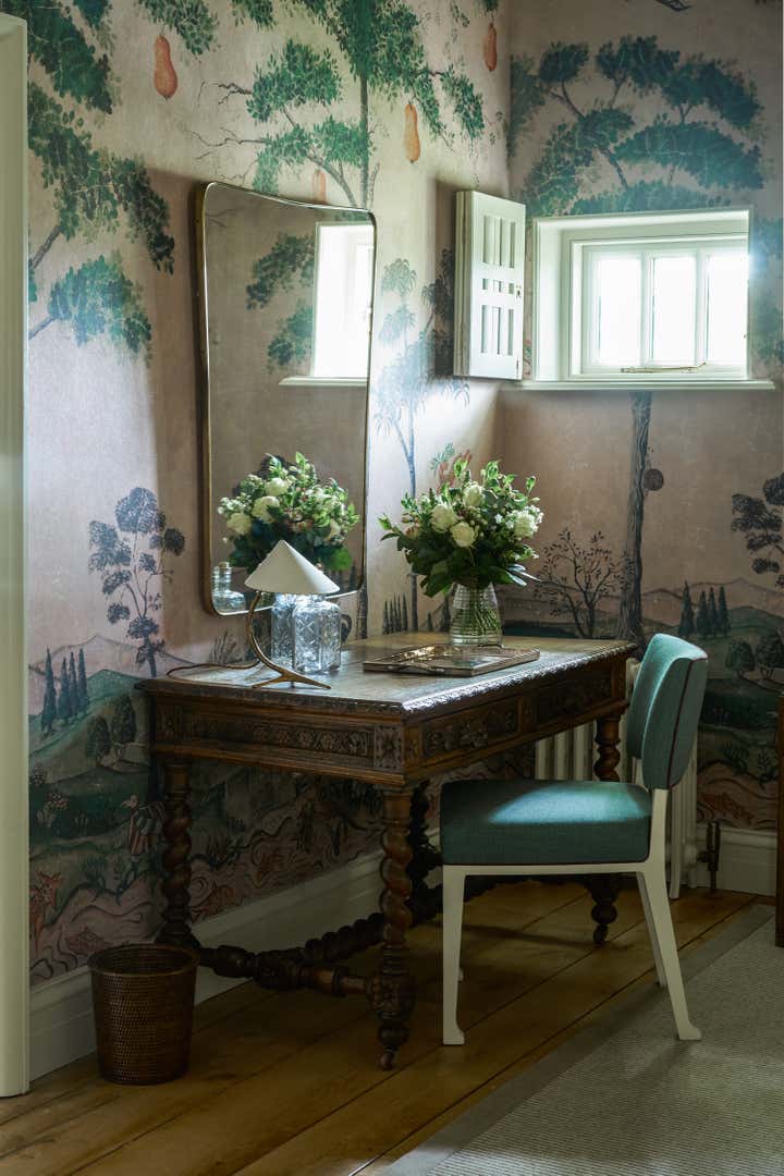 This summer we completed the Pavilion suites at Limewood Hotel. They are the hotel’s special hide-aways tucked away in the forest. For Pavilion One we used a lovely woodland wallpaper, reflecting the rooms surroundings. The domed ceiling was painted in gloss, and contemporary fabrics and one-off pieces help create a timeless space which feels both luxurious and unique.