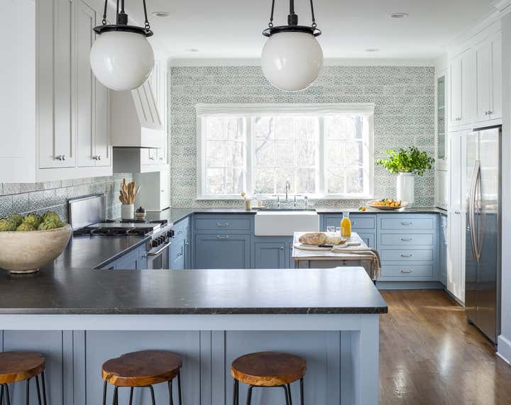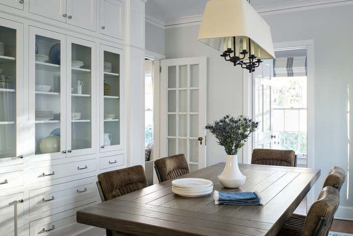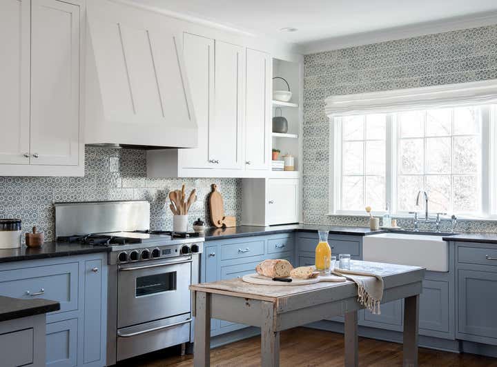 This French Revival home is a small, quaint cottage with an abundance of character and charm. However, the dark interior and lack of functionality did not work well for an active family of four. We completed a full remodel plus an addition to create a dream home. The kitchen was relocated from the right side of the house to the left to be more central to the living spaces. We brought in elements like inset cabinetry, hand-painted tiles and hand forged railings to enhance the home s original beauty. Throughout the house, calming colors and layered textures were used to give each room a cozy, relaxed feel. The result is a peaceful, comfy and cheerful interior that reflects our clients wonderfully warm personalities.