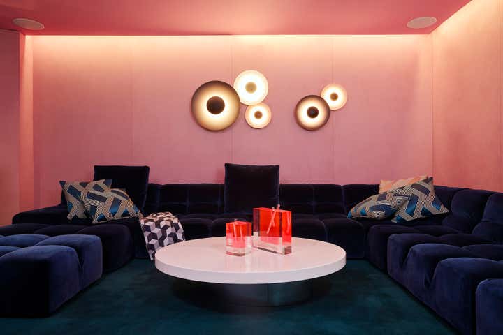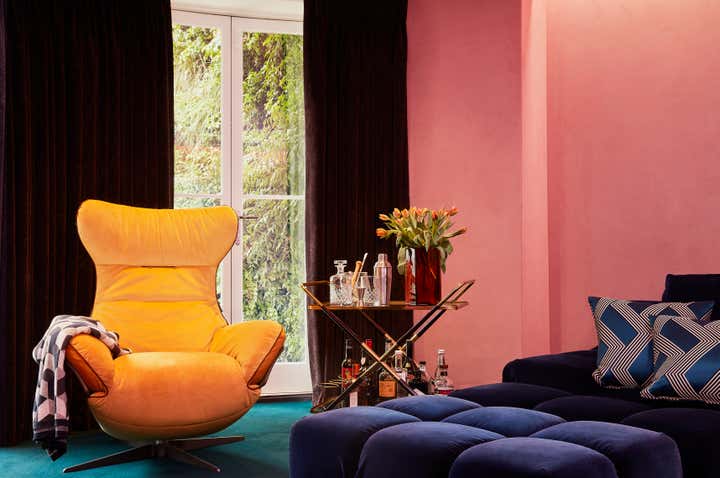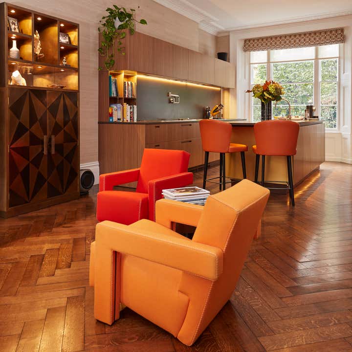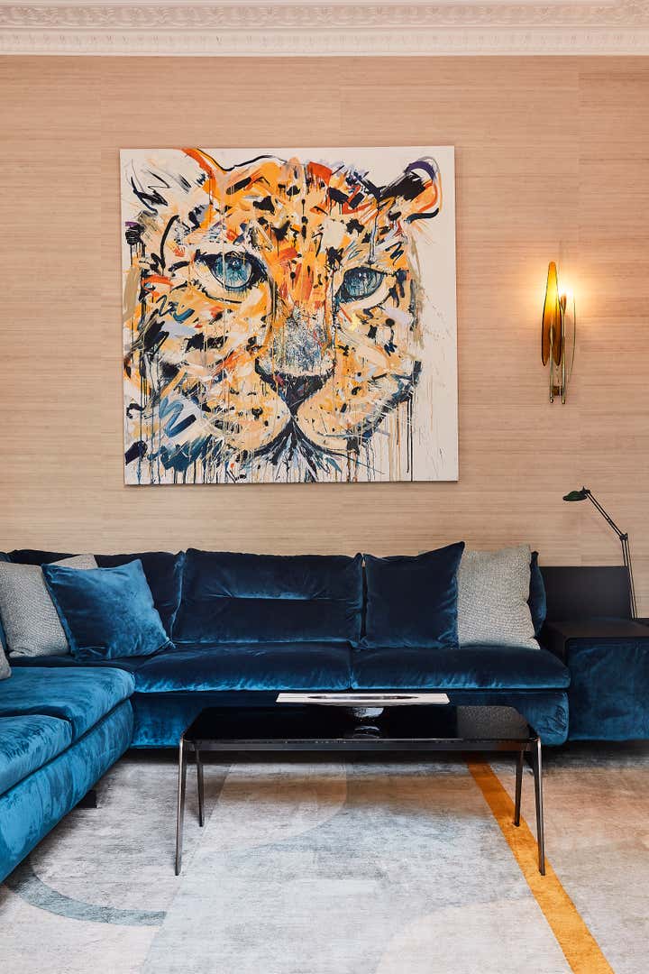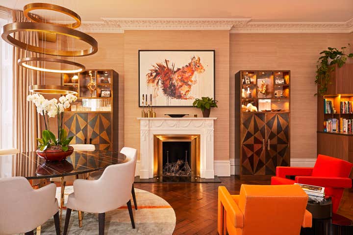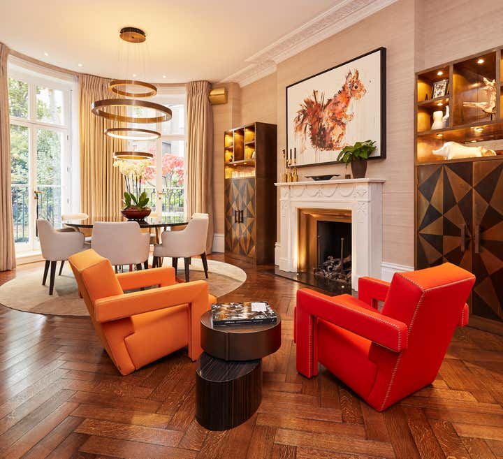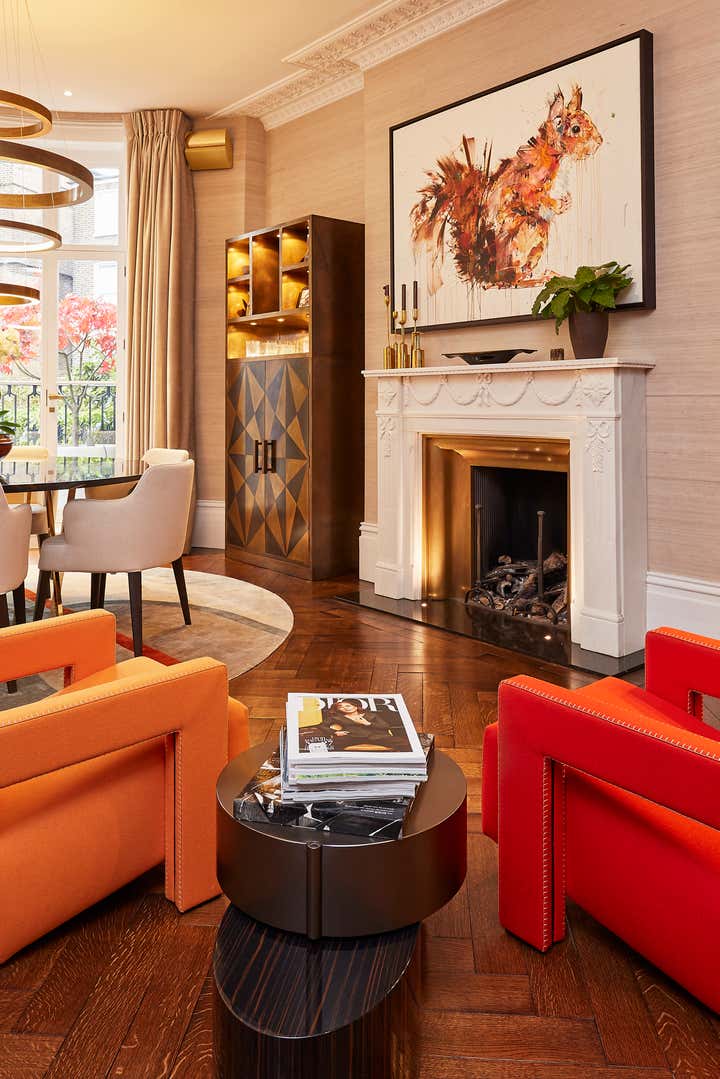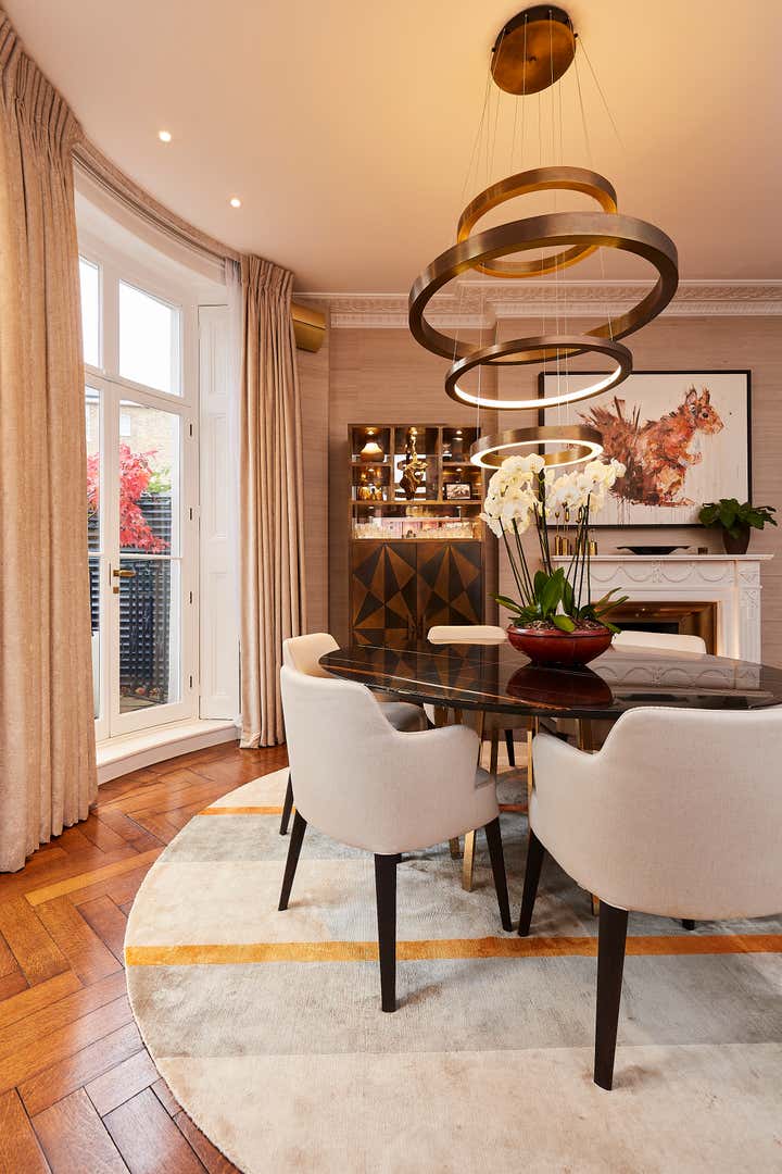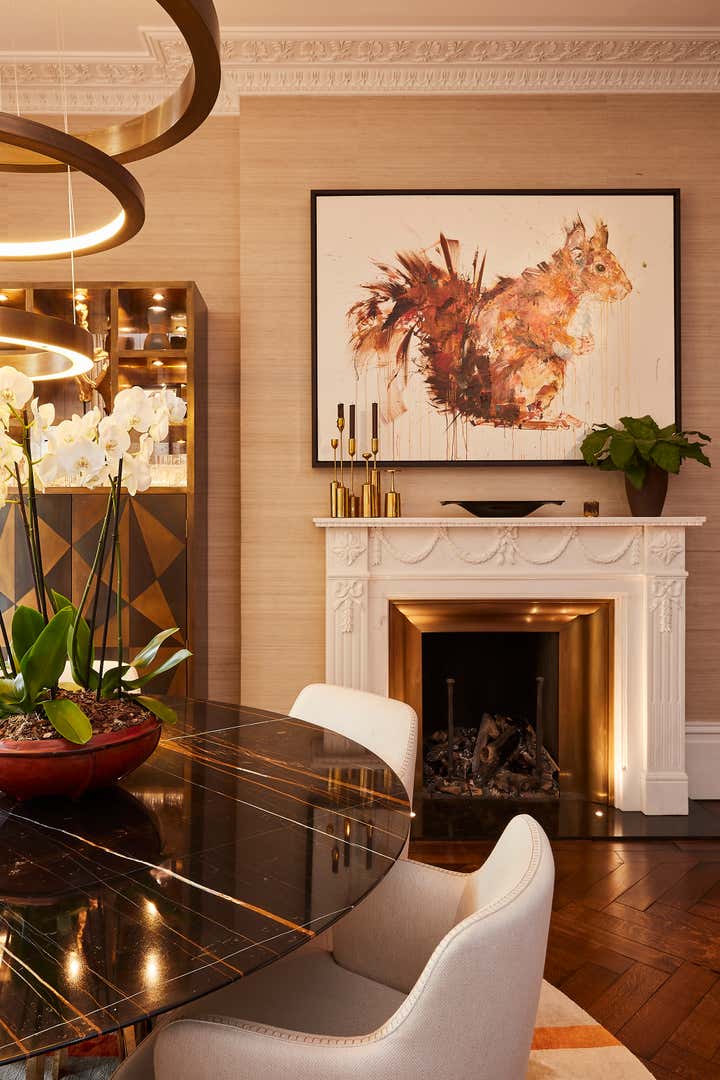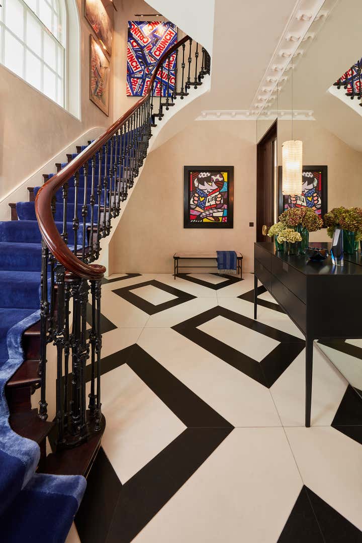 This bold and beautiful period home is nestled in the leafy north west London neighbourhood of Primrose Hill, on Gloucester Avenue. Our client, an art lover and avid collector, commissioned us to carry out a renovation for his primary home.We wanted to ensure the interiors reflected his eclectic, playful style and love of colour and drama. We were also keen to make sure it would fit with his lifestyle. He has two whippets so the interiors had to be dog-friendly, while remaining exceptionally chic and luxurious. The owner of this London home also enjoys entertaining guests, so our interior design team kept this in mind throughout the design and execution stages of this fun project.