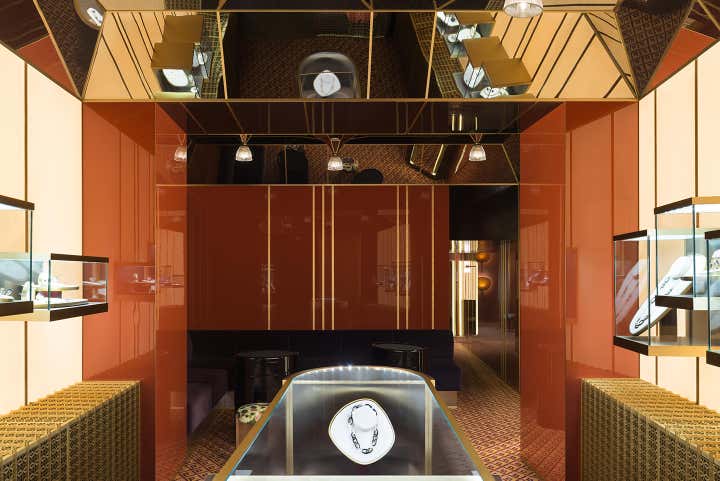 The new store concept, devised by DIMORESTUDIO exclusively for Pomellato, offers visitors a unique experience by creating a new visual and tactile journey into the world of Pomellato.