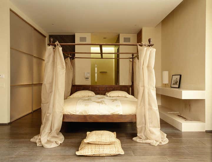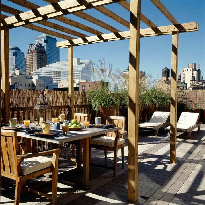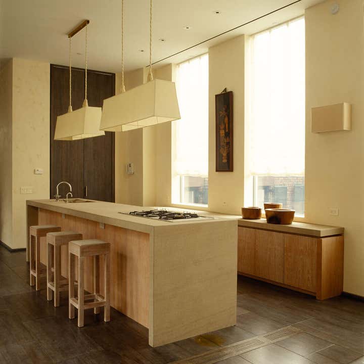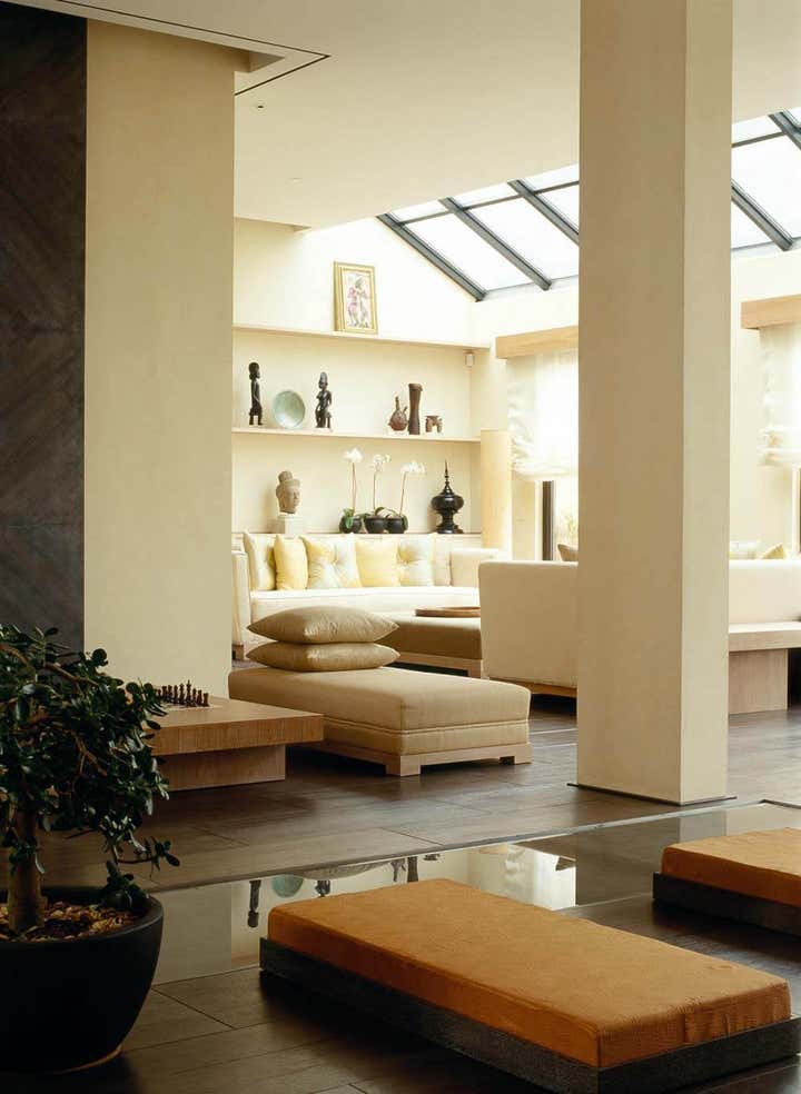 East meets West in this spectacular Tribeca Loft that exemplifies style and elegance. We opted for a minimalist aesthetic to compliment a collection of Asian antiques. Keeping the furniture to the essential, we harmonized the interior design with the owner’s art collection sourced from their worldwide travels, combining Buddha statues with a painting by Chagall. Great attention to detail was paid, importing building materials and feature pieces from Florence, and maximising the use of the building’s wide open space and it’s spectacular location by creating a terrace that features a small granite pool of Asian inspiration with the magnificent view of the Tribeca skyline. The centrepiece of the loft is the indoor pond, which creates a Zen atmosphere by virtue of the gentle sounds of flowing water, and the dancing reflections it casts across the room. We kept the tones warm with the wooden flooring and furniture, and injected bursts of colour with natural flowers and Italian stucco walls, to create a comfortable and balanced ambience with timeless liveliness. We created a "gallery-house" to meet the clients desire to at once take root somewhere and travel the world. This project was featured in Luxury Houses and Architectural Digest.