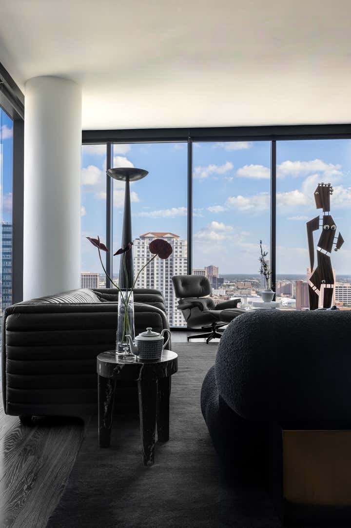 Presenting the latest rendition of the Post Oak Residence. Bilal Rehman s vision has revitalized the interiors of this cutting-edge high-rise. Utilizing his own home as a canvas for constant design experimentation, Rehman explores the interplay of vintage and contemporary aesthetics, cultivating a diverse collection of furniture, decor, and artwork sourced from his worldly adventures. This synthesis of styles transforms the space into a dynamic showcase of design ingenuity.