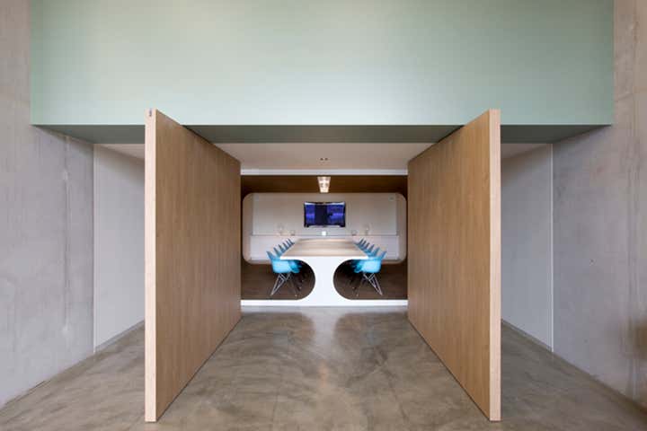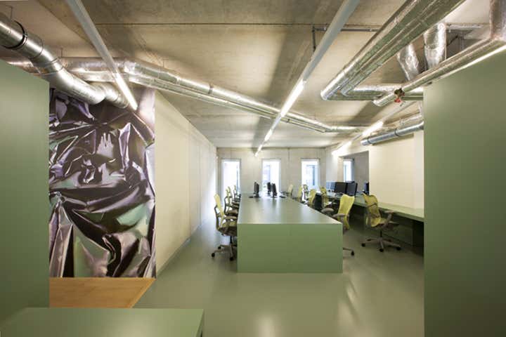 PostPanic is a combination of a design/animation studio and a production company. In the briefing, functionality was the biggest priority. To ensure a constant quality, PostPanic purposely chooses to produce, direct, design and animate in-house to stay truth to their original vision, once in production. This approach requires that the various departments of PostPanic each have their clearly divided and defined areas. But at the same time PostPanic required to maintain as much as possible the openness and transparency that the place offered. The design also had to take into account that the workforce fluctuates from 14 to 40, depending on the different stages of production. In his design Mentjens took the existing concrete structure, and more specifically the large concrete columns, as his point of departure. More text on our website.
