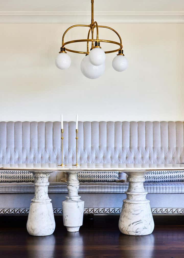 We approached the interiors of this 3 story English Tudor Revival home with the goal of fusing our client’s interests in vintage and collectible pieces with our contemporary art-forward aesthetic.