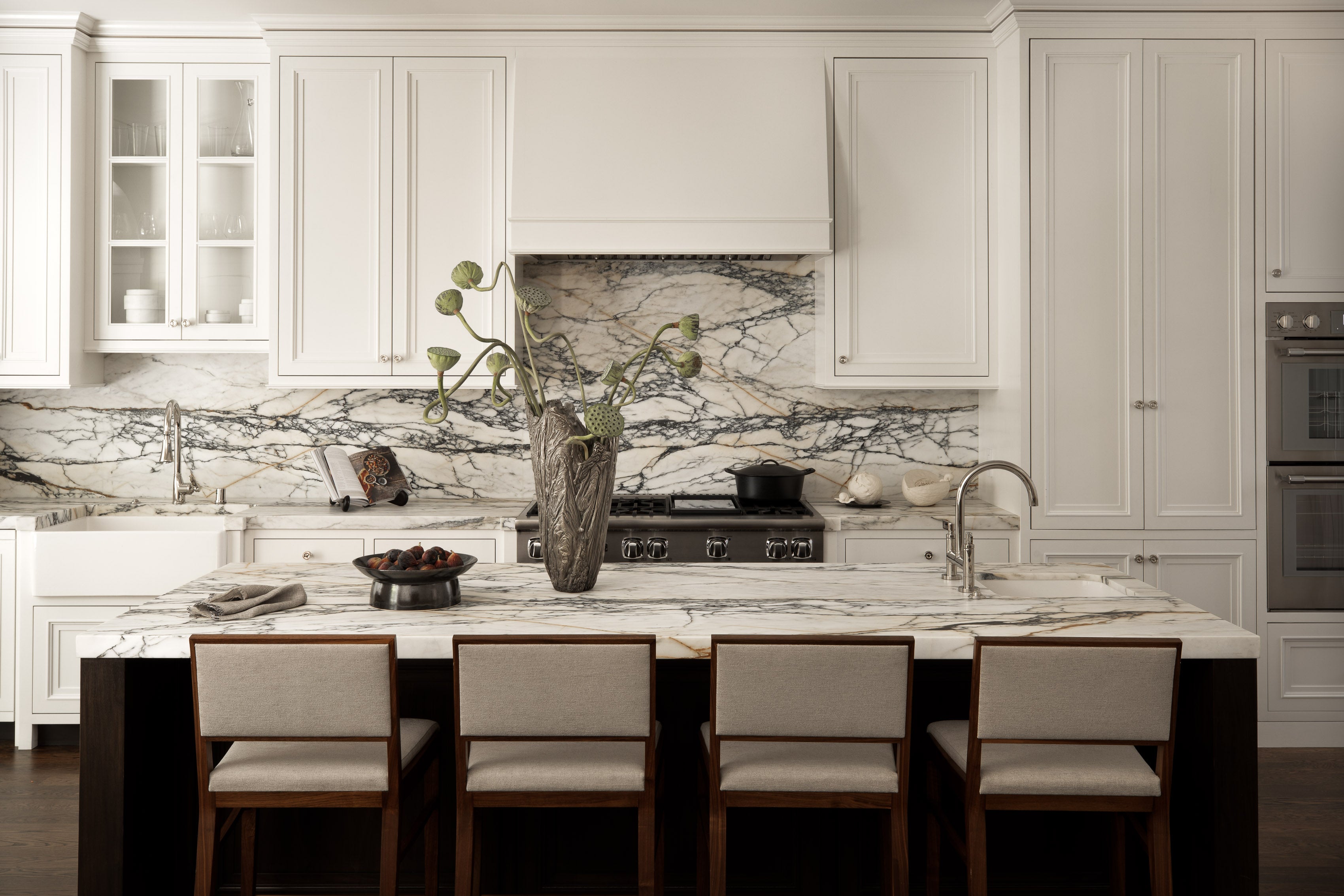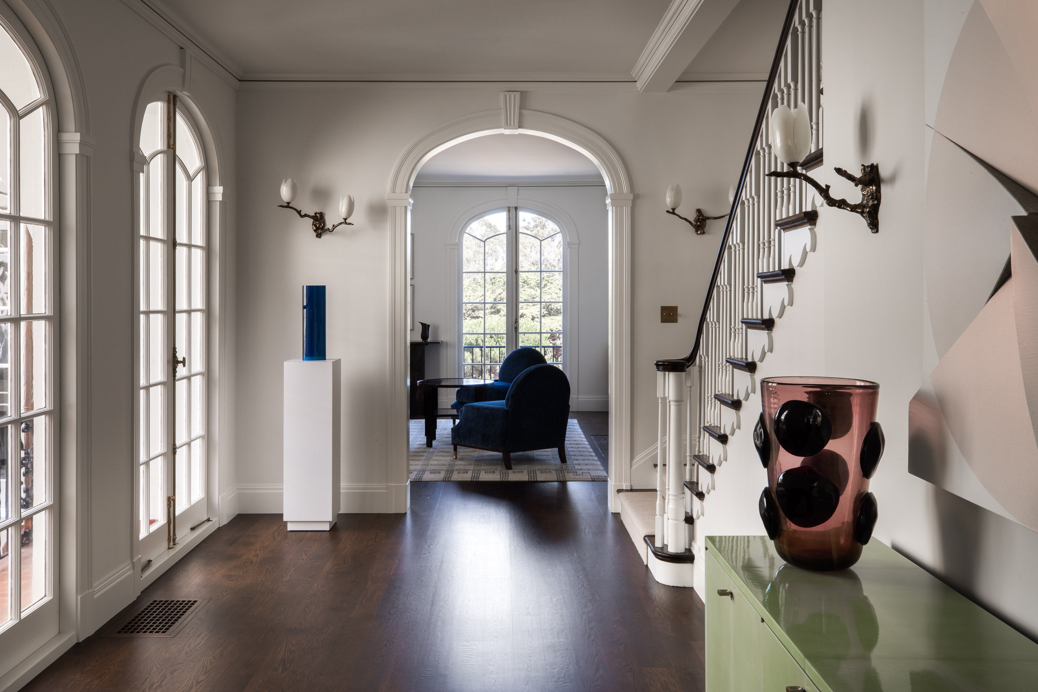 Though it is hard to compete with its dramatic views across the green expanse of the Presidio out to the Golden Gate Bridge, this Presidio Heights townhouse’s stately but relaxed elegance merits attention of its own. Built in the 1930’s and certainly a product of San Francisco’s transitioning Art Deco period, we wanted to keep the home’s strong bones and delightful period details, while also creating the feeling of a bespoke home built specifically for our client’s and how they live. As a result, the home is a collection of dualities: both showplace (for the stunning natural environment) and showpiece; historical and modern, structurally formal but decidedly comfortable.